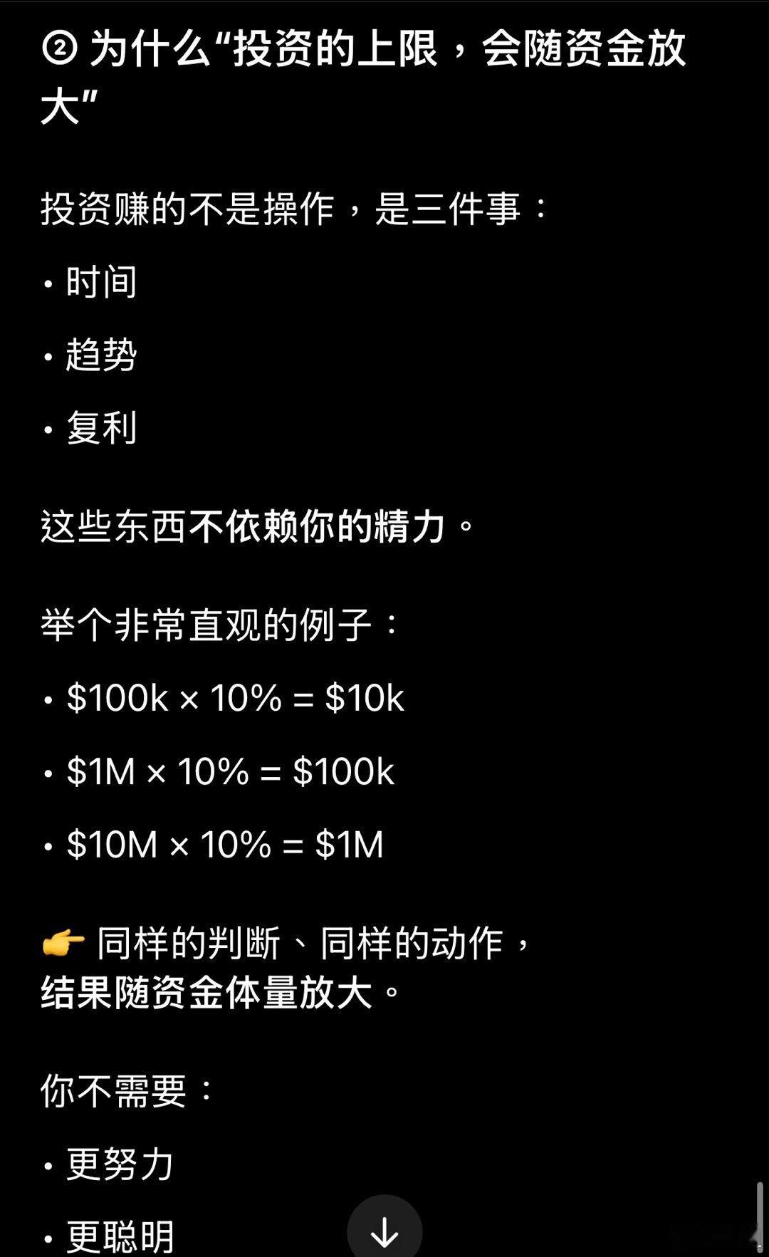 虽然我花了很多时间研究如何做中短线交易,对我来说性价比更高的还是长线投资,因为资金体量的关系。但交易的好处就是让我在等待复利增长的过程中,感觉有参与感,娱乐感gpt认为,大钱,几乎一定来自投资,来自对趋势与结构的判断。交易决定的是你能不能守住、放大、加速那笔钱。当资金还很小的时候,趋势判断更多是训练认知。但当资金到了一定体量,趋势本身就会成为生产力。交易赚的是“操作差”,投资赚的是“规模差”。操作差有上限,规模差几乎没有。同样的判断、同样的动作,投资结果随资金体量放大。所以我的资金主要还是做长线投资,其中一部分才是做交易。美股
