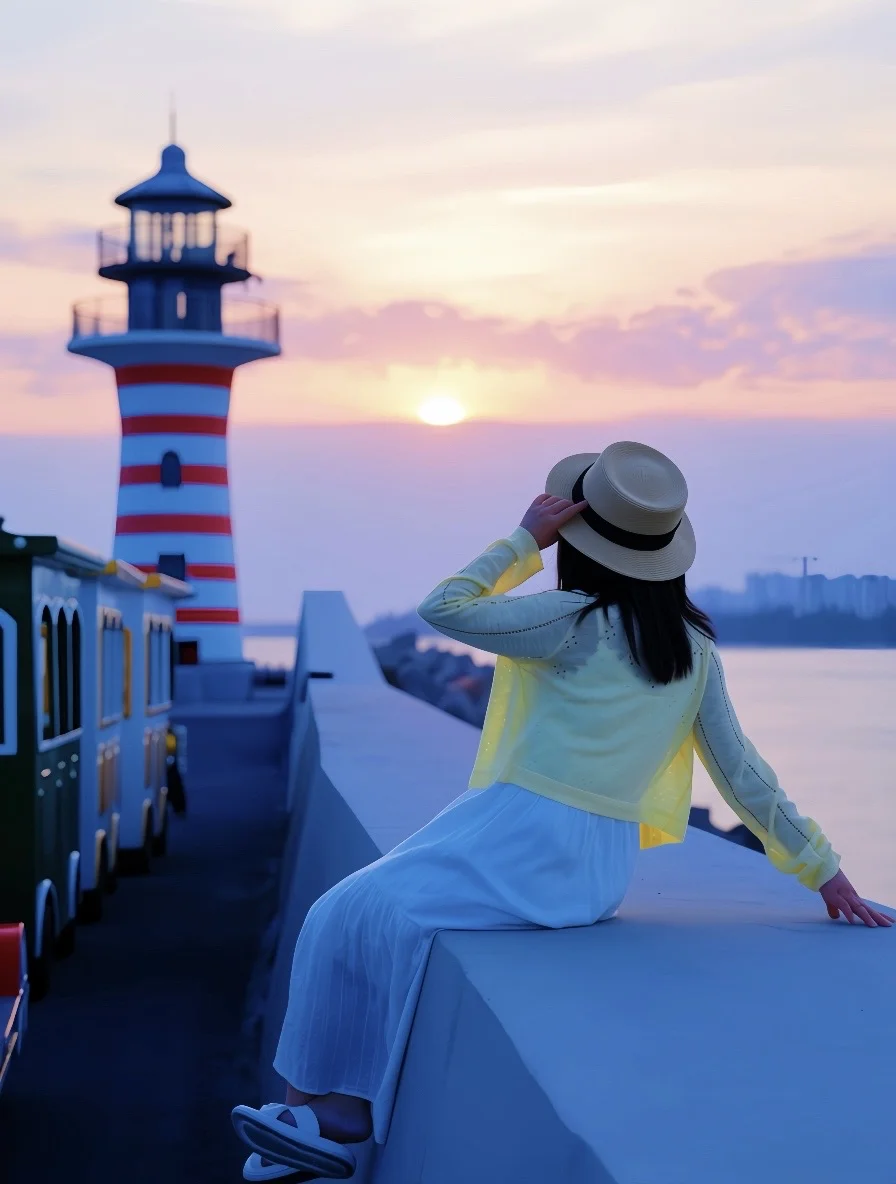 “消失的她”取景地,拍照真的绝了👍沙滩细腻得像面粉,娃光脚跑都不硌脚。灯塔下随手一拍就是大片📷,建议傍晚来,晚霞+灯塔+剪影,朋友圈点赞爆了!还能坐小火车,小西瓜乐得直蹦。