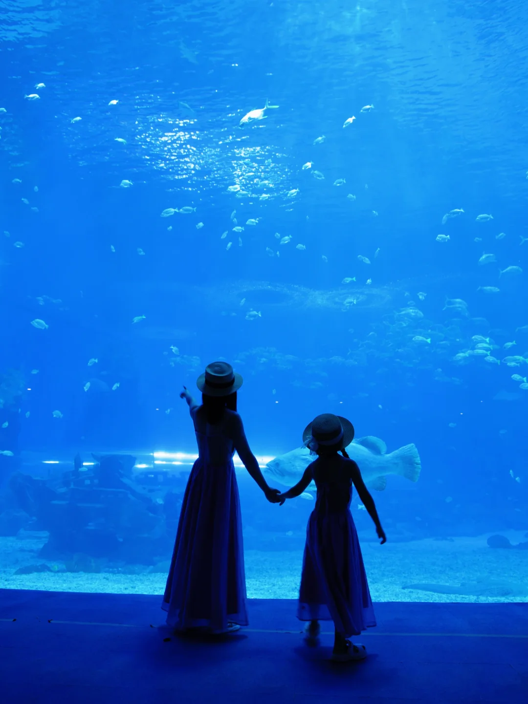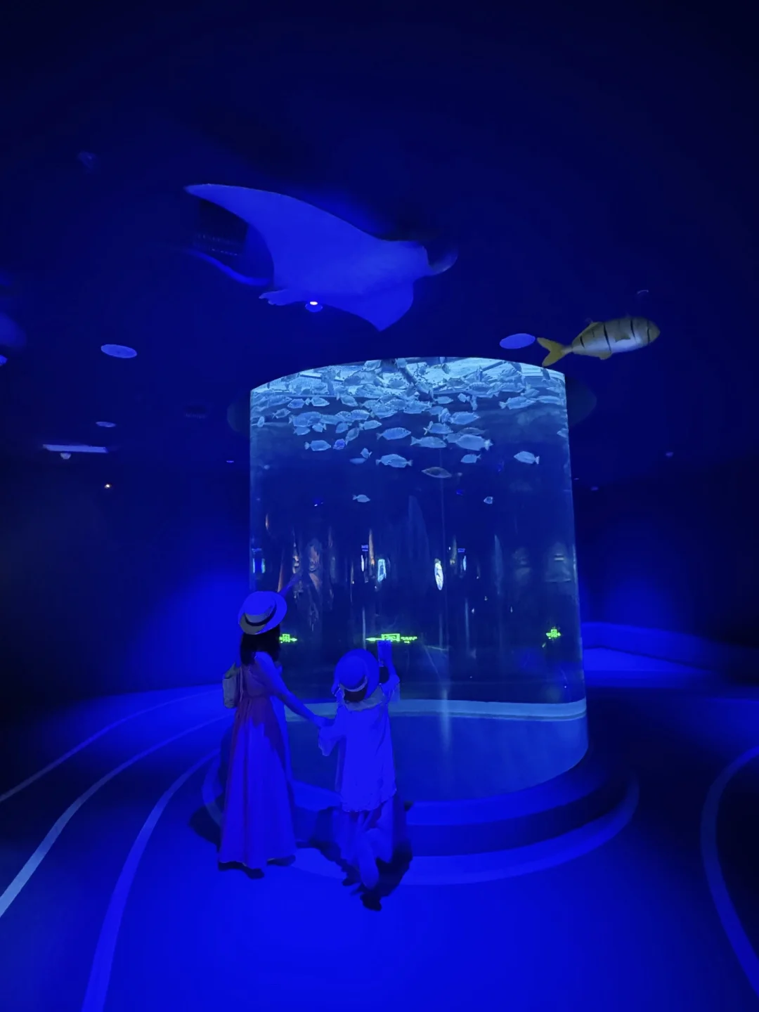 娃的快乐天堂,一整天都玩不完。海豚总动员超治愈,小西瓜看得目不转睛;南海秘境像海底隧道,五彩斑斓的🐟鱼群游过头顶,小西瓜兴奋得直拍玻璃。还有极地奇遇、水下表演,边玩边涨知识