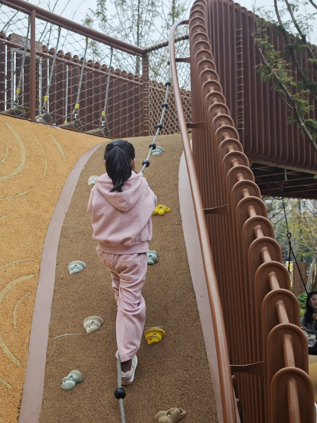 超大的无动力乐园,攀爬网、滑梯、蹦蹦床应有尽有。最贴心的是地面都是软包材料,玩耍更安全,而且有遮阳设计,不用担心孩子晒着。看到那片沙池,我家娃直接冲过去,玩得不想走