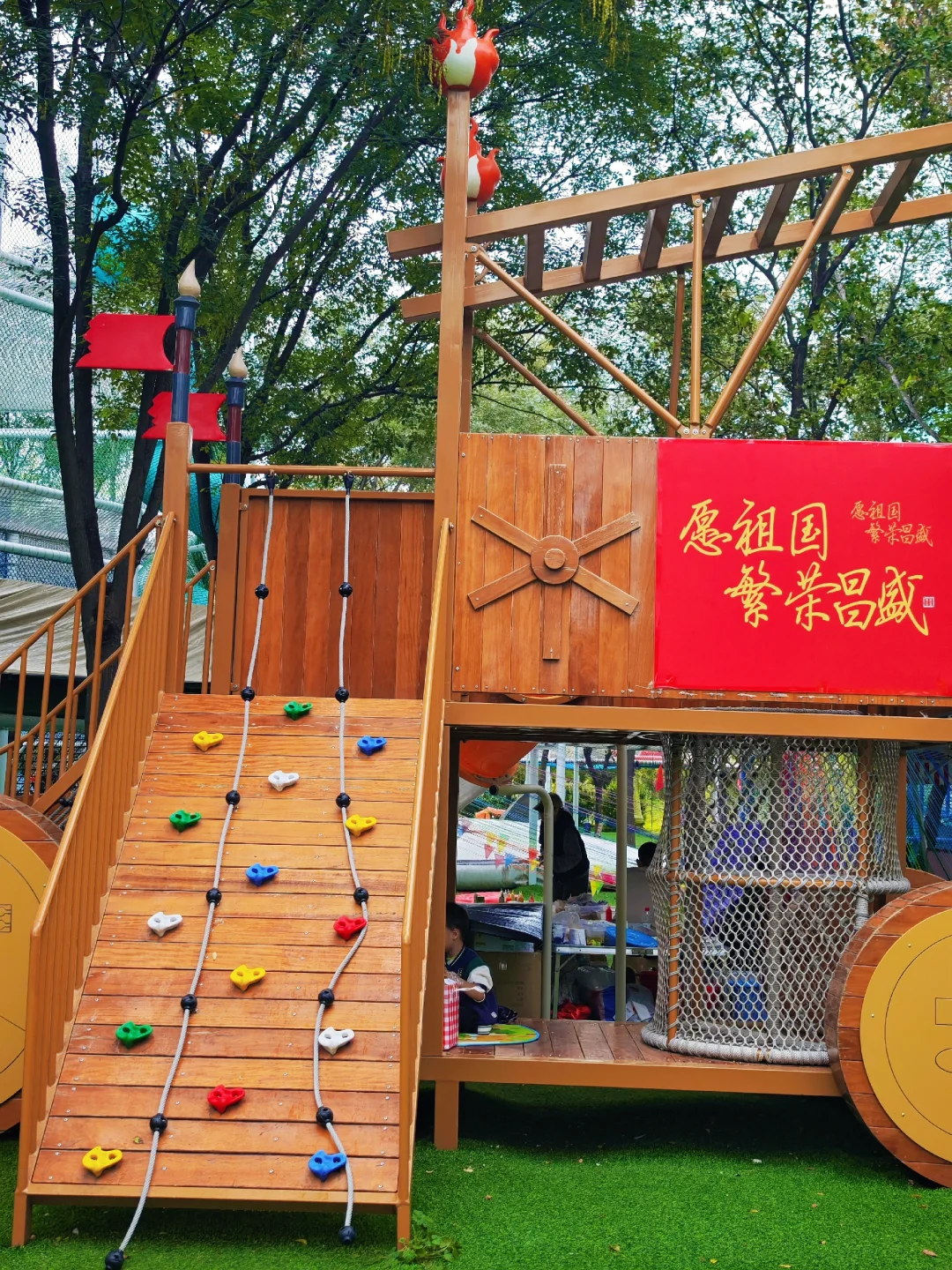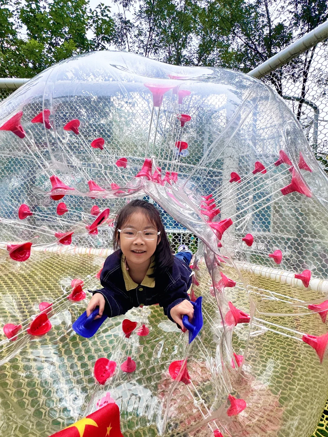 · 💜 攀岩滑梯:超大攀爬网+十几米高的滑梯组合,娃一冲进去就“消失”在彩虹绳网里——放电满分!