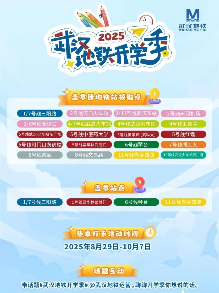 2025开学季,武汉地铁盖章活动又来啦❗️