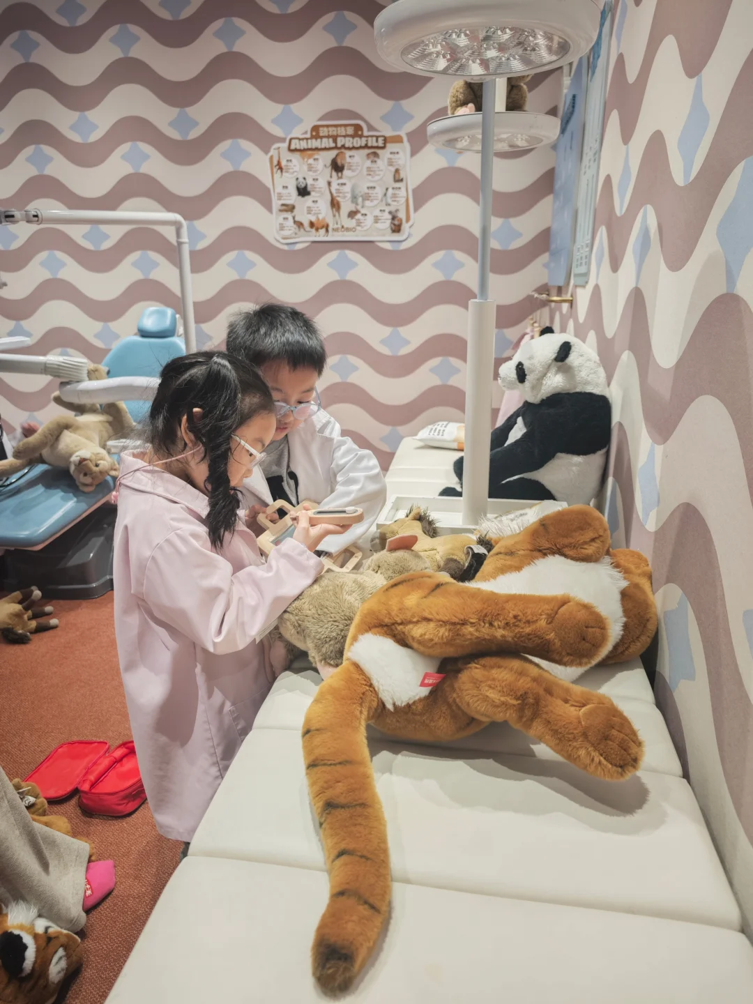 这里简直是小朋友的放电天堂!超大的体能迷宫和攀岩区,能让他尽情跑跳锻炼胆量。小朋友最爱的修车工厂和洗车厂,变身小技师和洗车工,玩得超投入。还有模拟超市、宠物医院这些过家家项目,一群孩子能角色扮演一下午