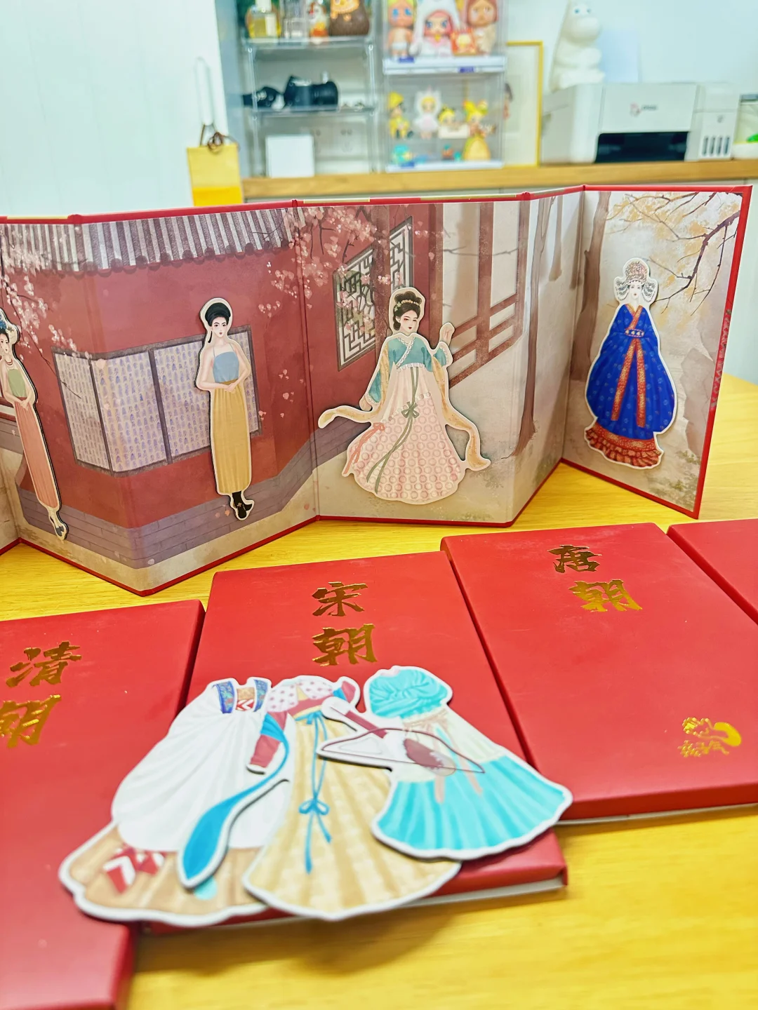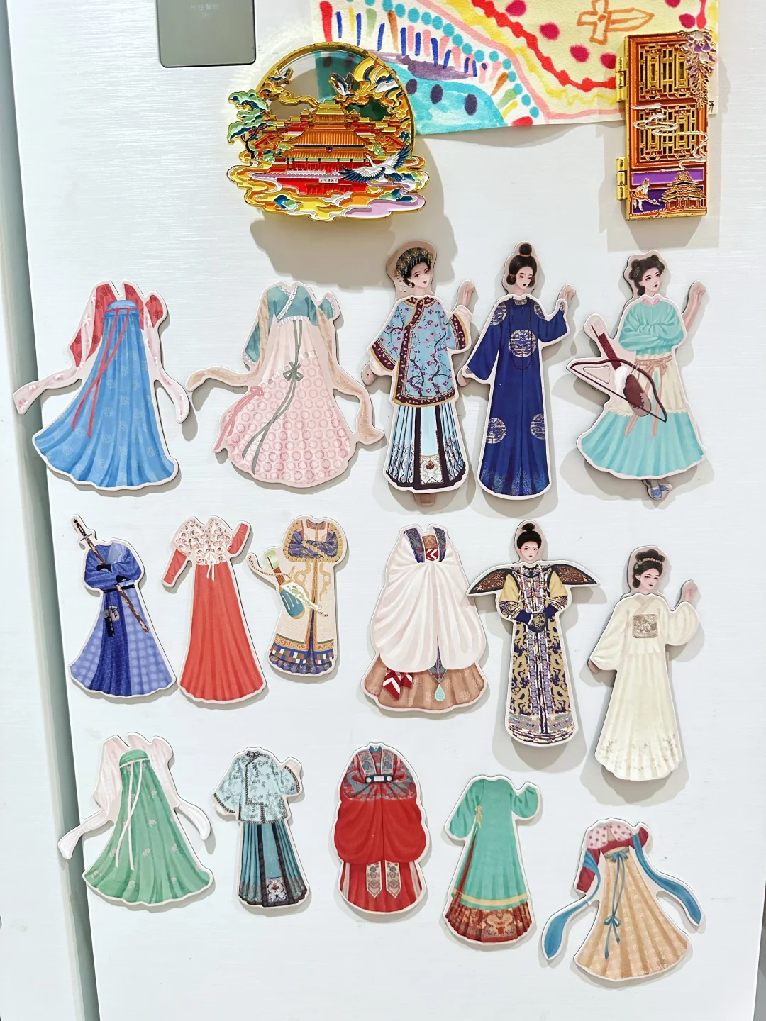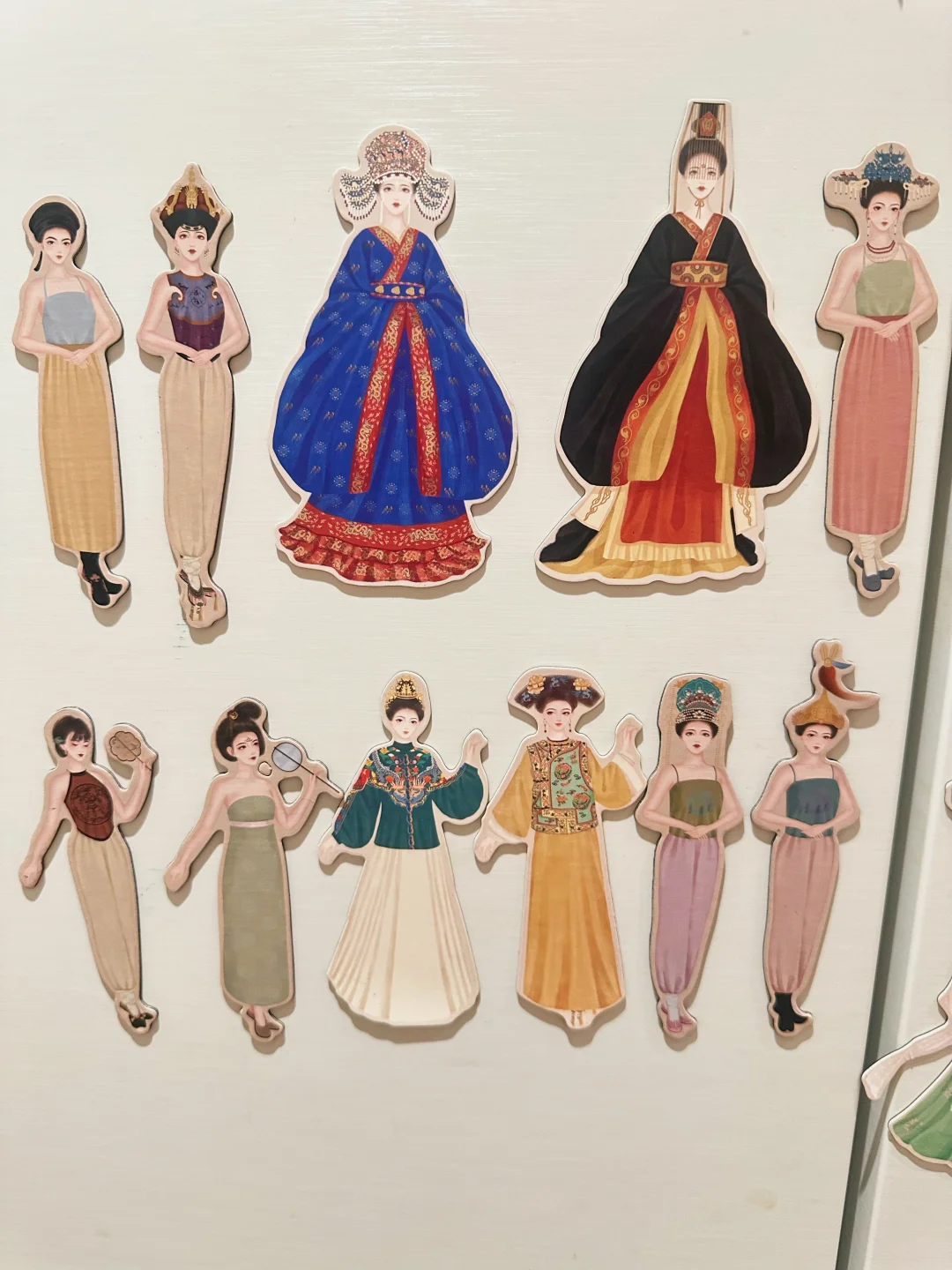 现在女儿玩孩子气换装贴纸。各种各样的古装美人,有唐宋明清四个朝代不同风格的各种衣服。