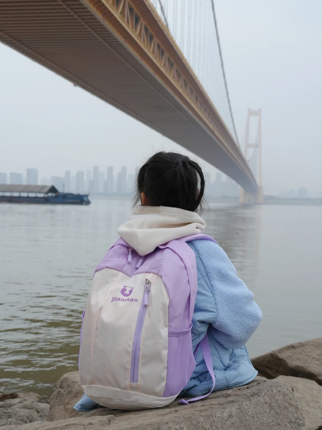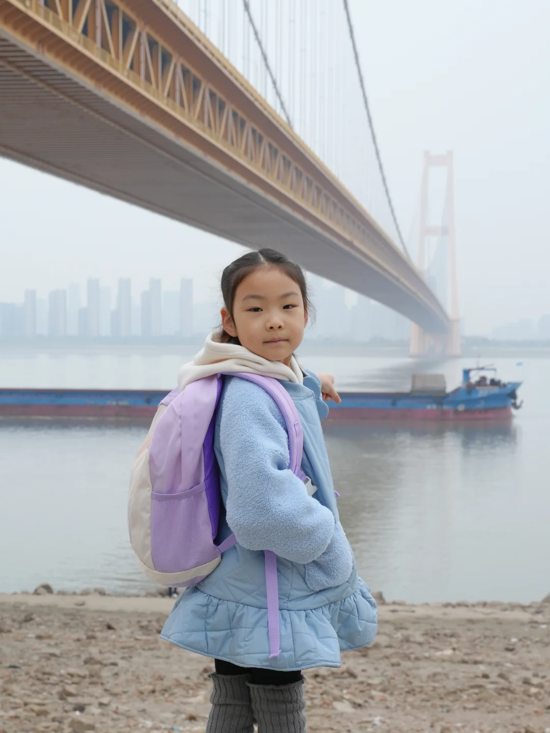 望着大桥和江面上的船只