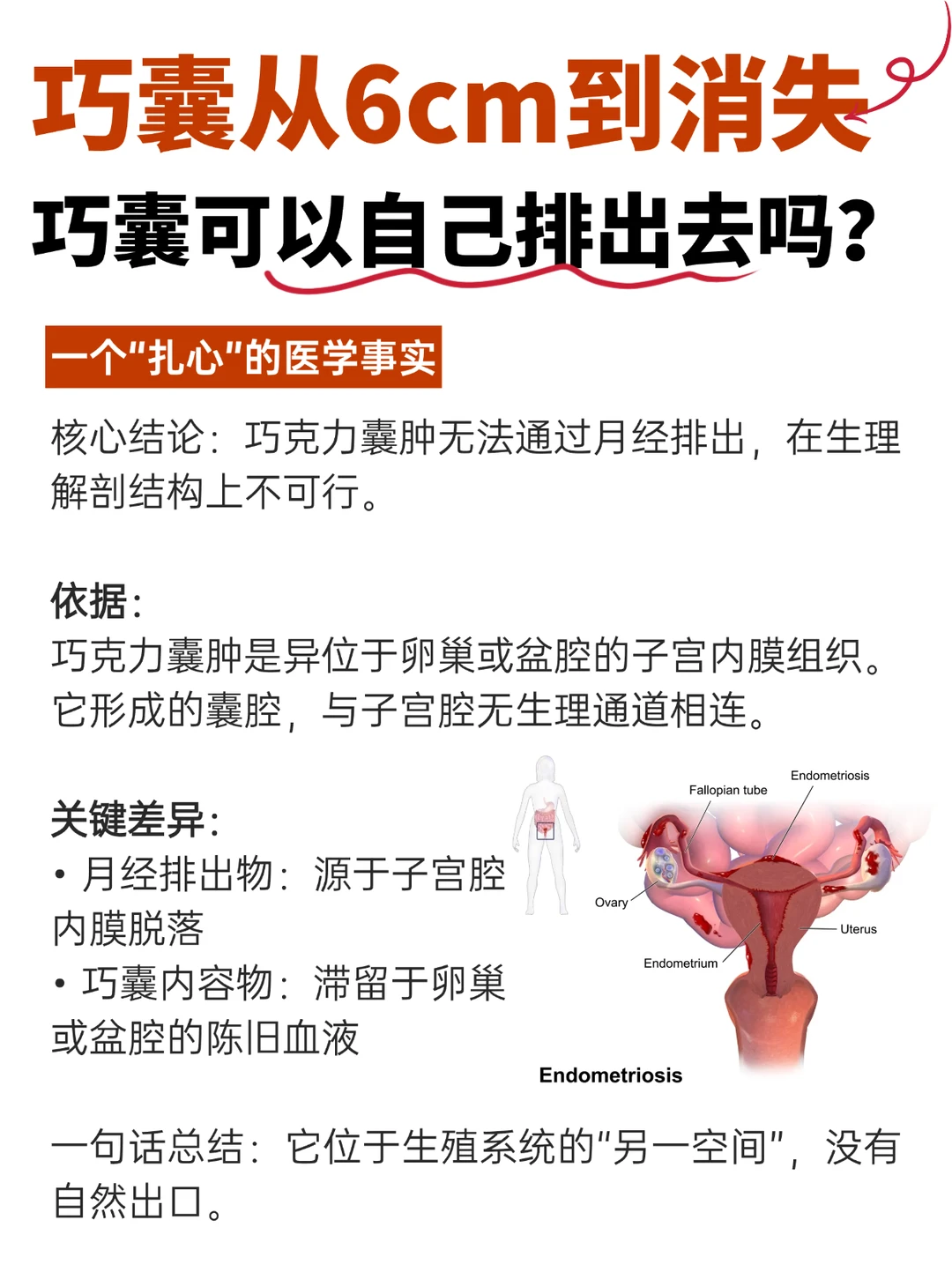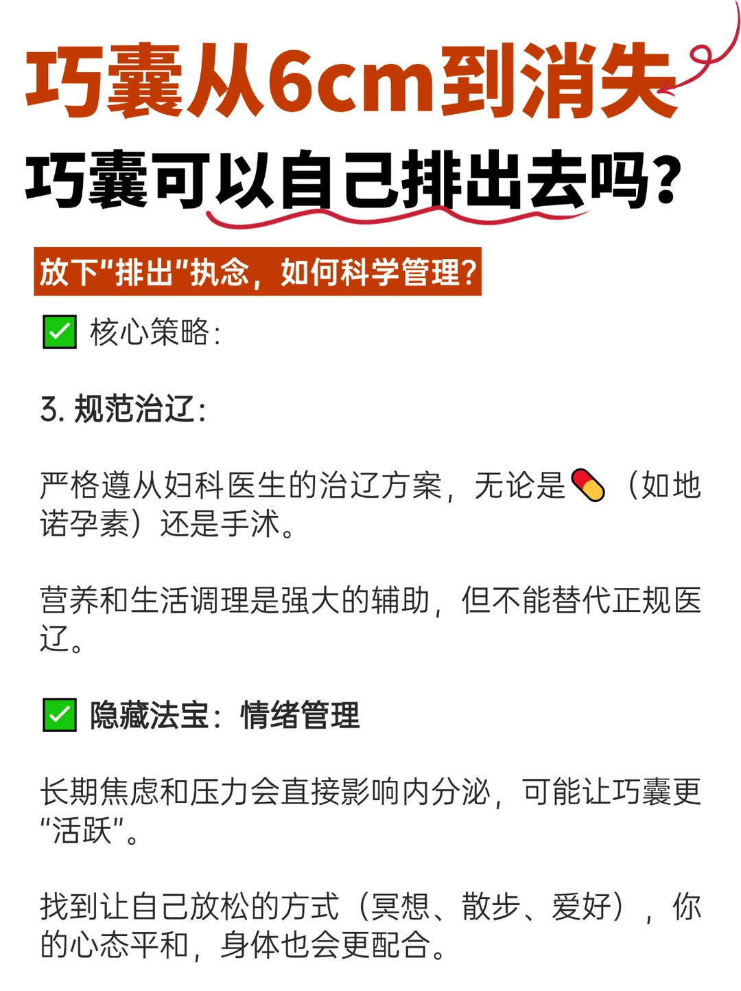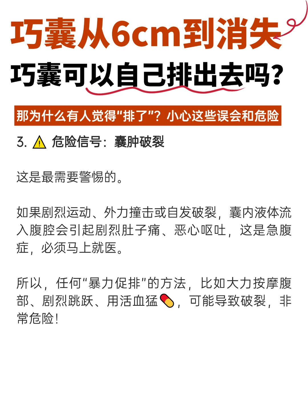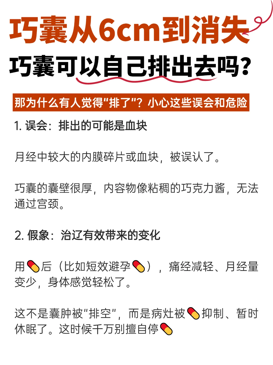 相信每一个巧囊姐妹,在确诊巧囊的第一时间,都在心里会希望:巧囊如果能像淤血一样,自己“排”出去就好了。