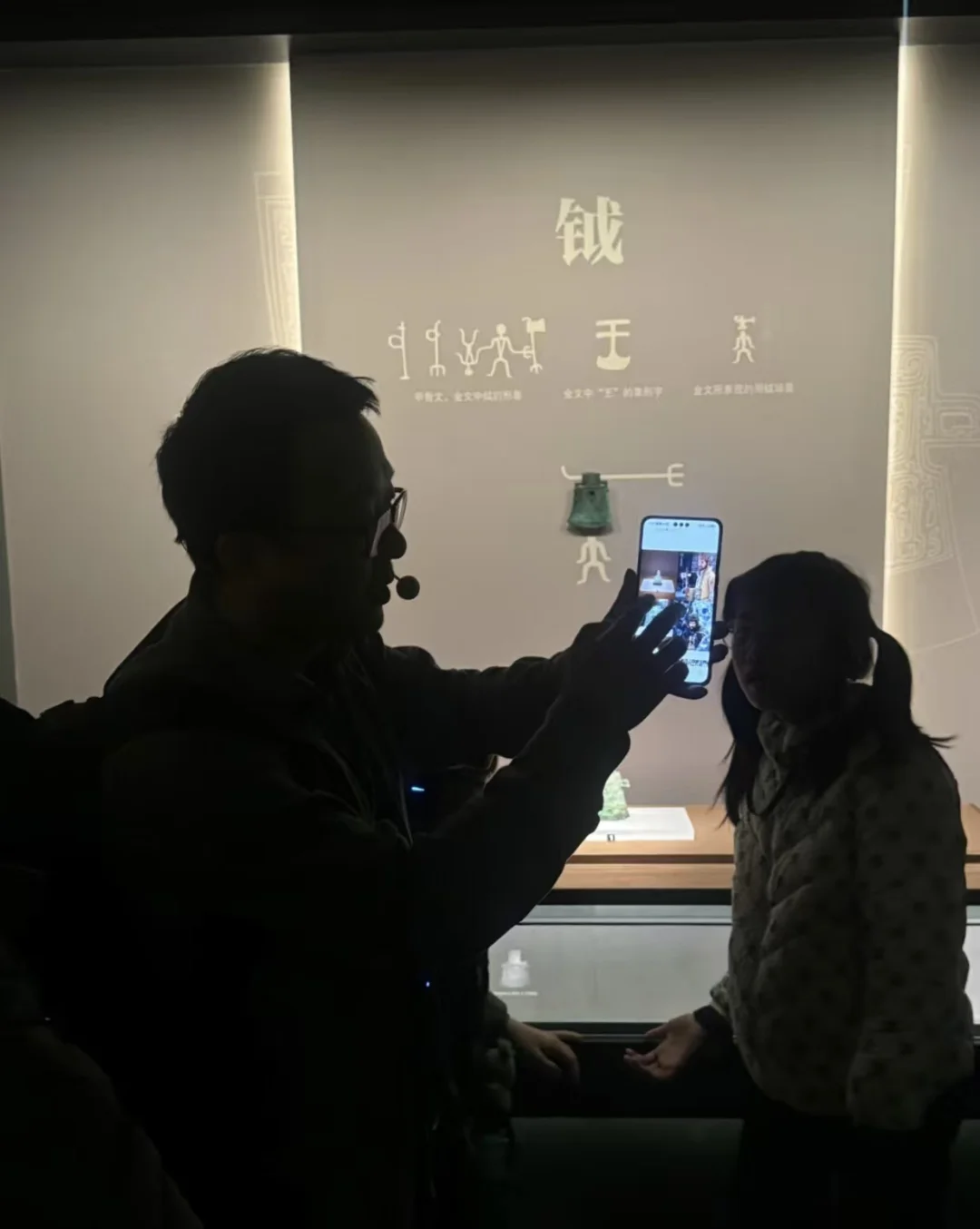 展柜里展示了,钺这个字在金文里的用法,像不像一个人一手拿钺,一手按住犯人准备处死。