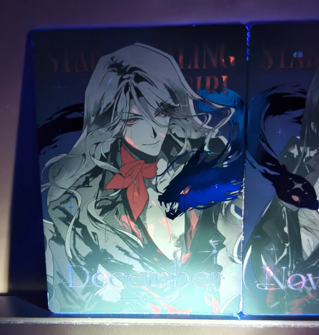 在黑暗中,紫光线下可以很清楚拍摄出沧月和玄月的血迹与蛇的反光。。我不会是最后一个知道的吧[哭惹R][哭惹R]最近才买了紫光线笔,紫光线笔可以照出来很多谷子的小巧思。沧月与玄月,家产就这么美丽...