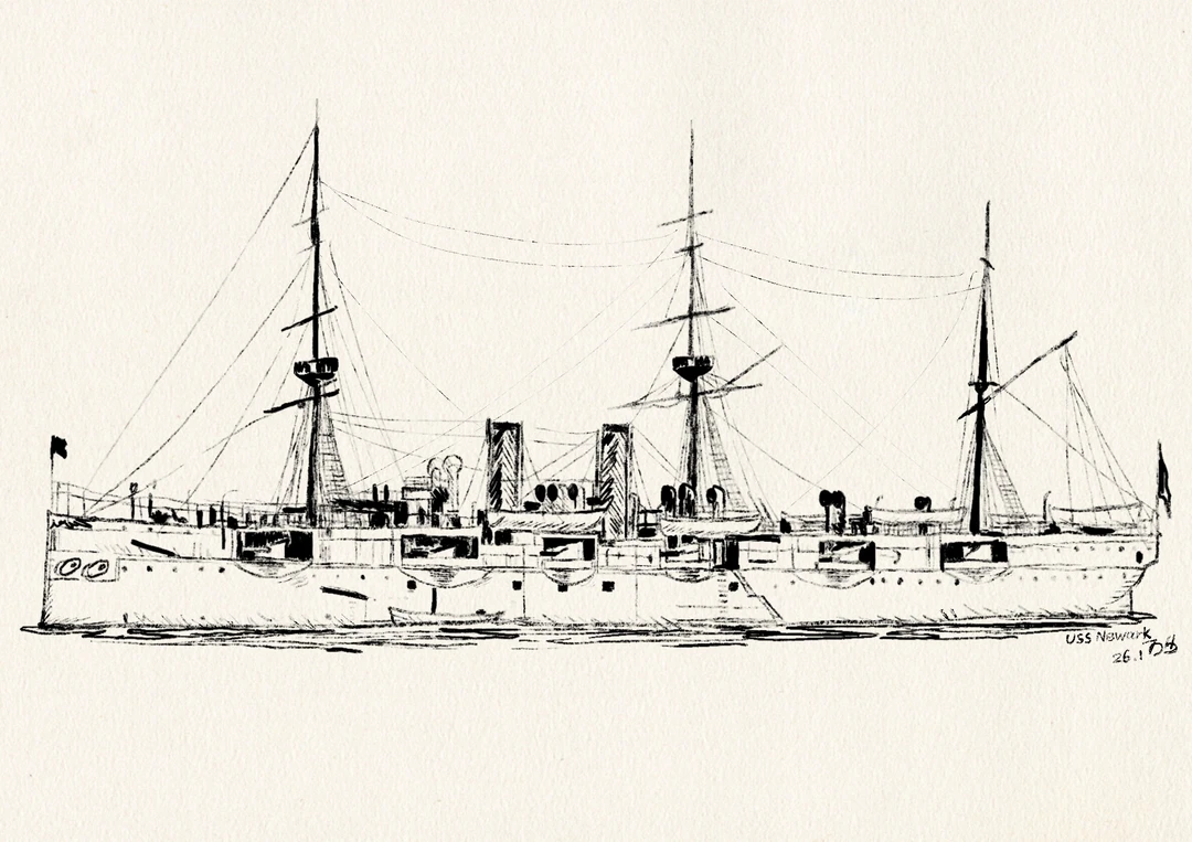 纽华克号是美国海军一艘防护巡洋舰,在设计上继承了“ABC”级巡洋舰(亚特兰大、波士顿、芝加哥)的衣钵,拥有更高航速和12门6英寸火炮。1888年在费城造船厂建造,1891年正式服役。1898年5月参加了美西战争中对古巴海域的封锁行动。1899年参与了美菲战争中支援美国陆军登陆的行动。1900年义和团运动期间,该舰在大沽港和烟台港附近海域活动协助联军登陆。1907年转入后备军并驻扎古巴关塔那摩海军基地。1913年退役后作为医院的隔离船使用。1918年重新服役,在一战期间作为海军医院舰艇服役。1926年出售拆解。