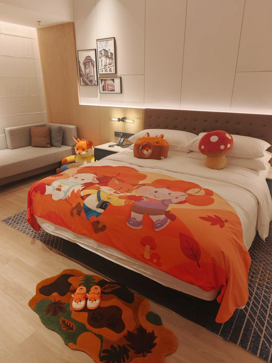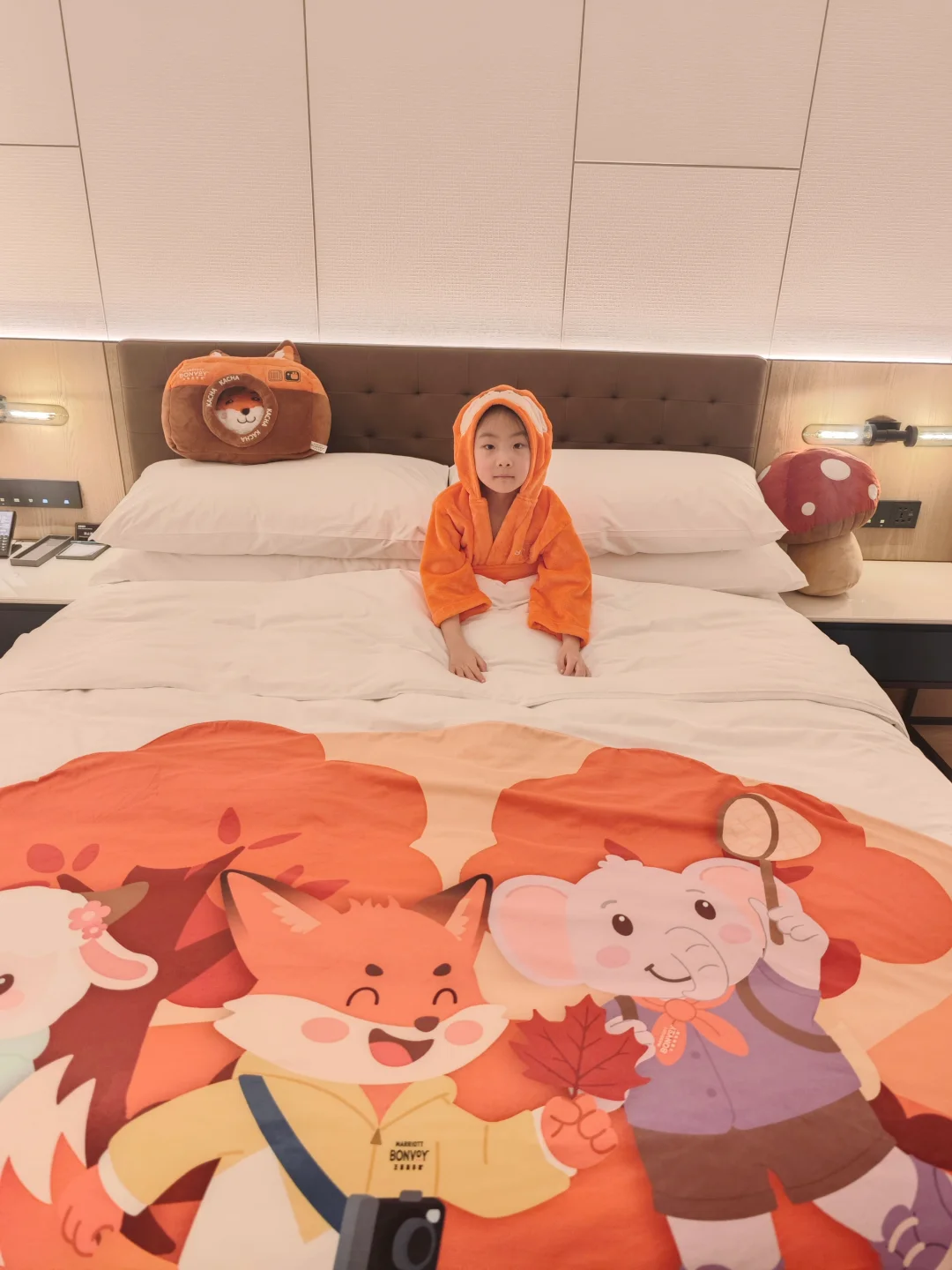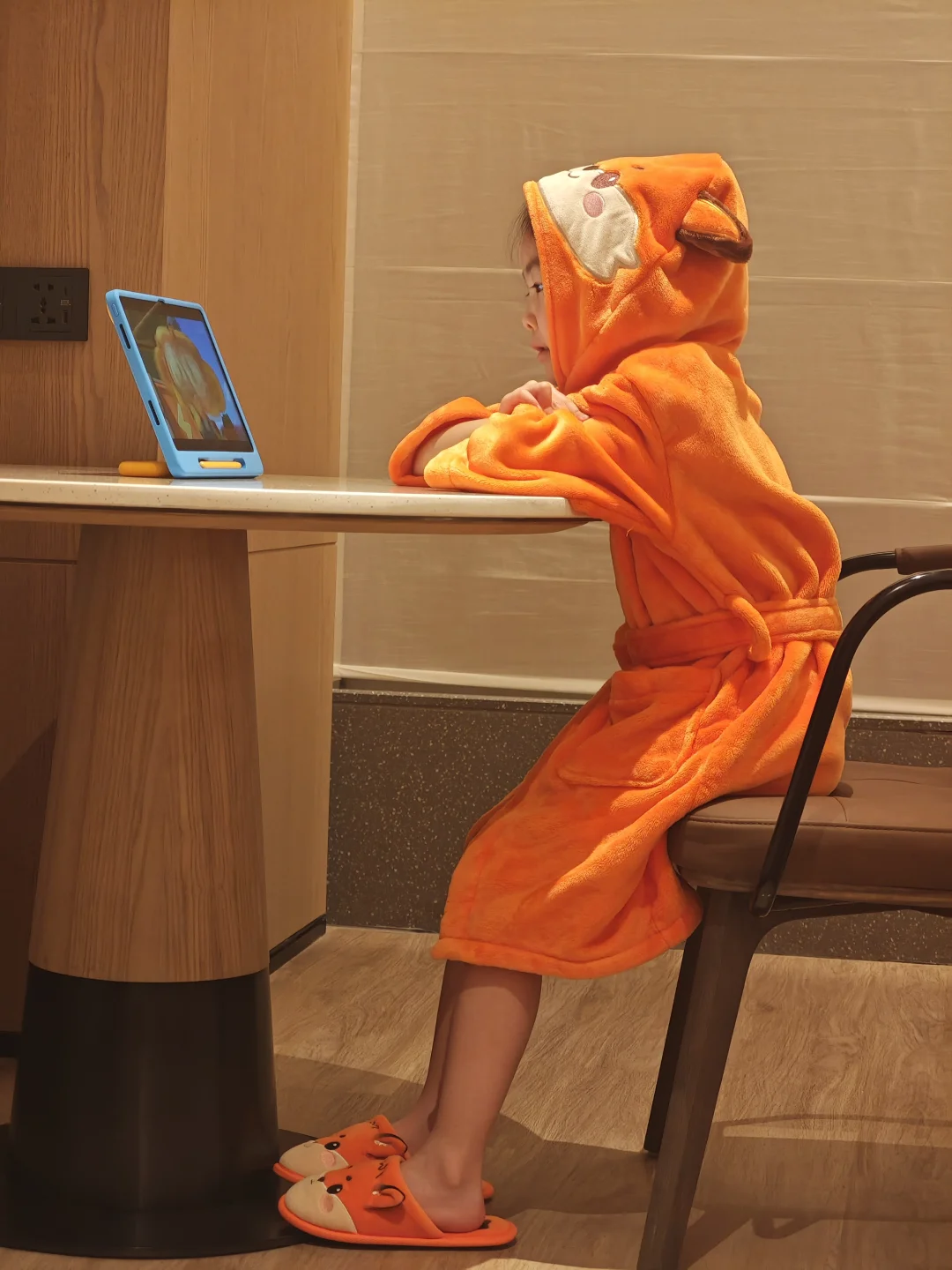 细节太戳妈妈的心了:小朋友的浴袍、拖鞋都是可爱的狐狸卢卡🦊,童趣满满,娃穿上就不肯脱,
