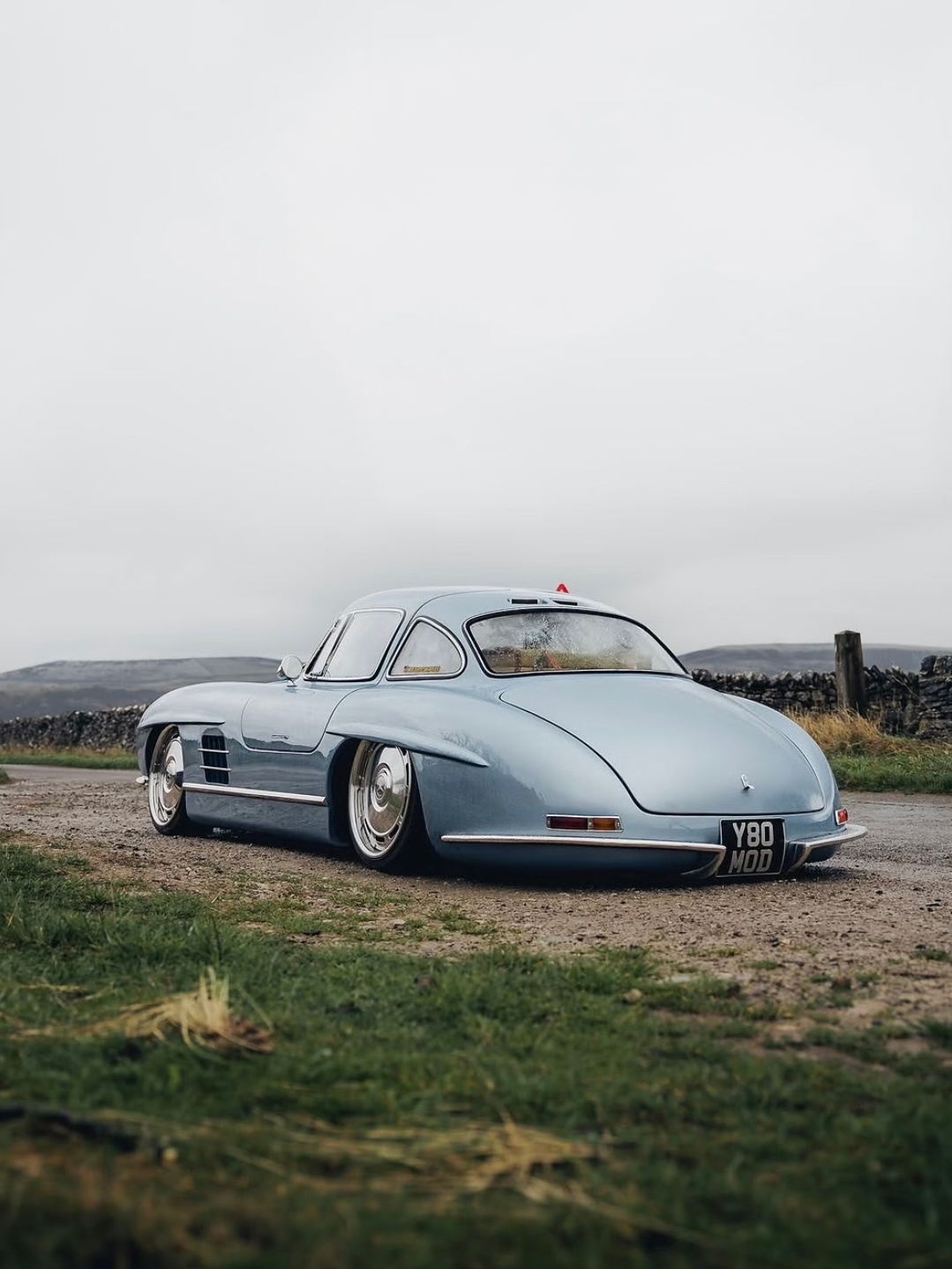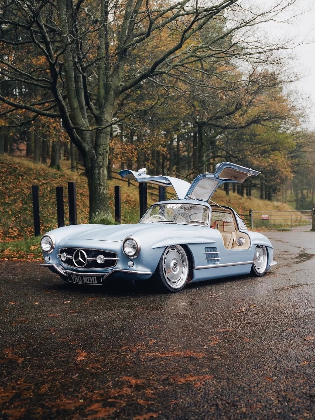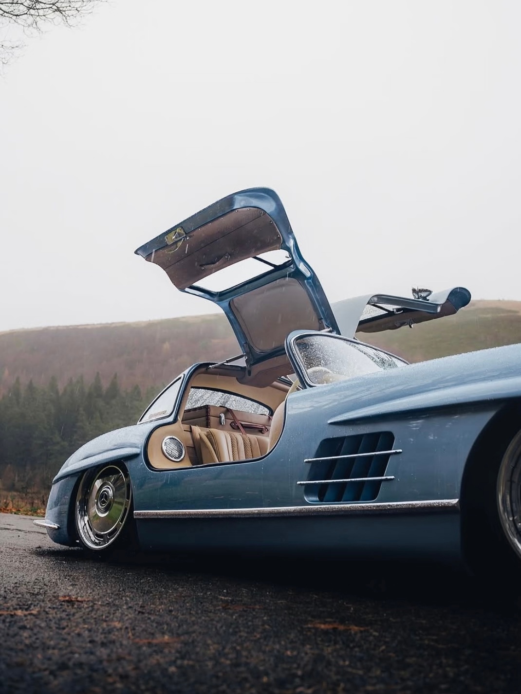 经典就是经典,魅力十足。其中最经典的莫过于独特鸥翼车门,看起来不仅炫酷而且管状车架还提升了车身强度,就是因为车门下沿过高所以让传统车门无法开启,鸥翼门才应运而生。整体车身线条流畅优雅,低车头、圆车顶配修长尾部,满满体现了 50 年代汽车设计的巅峰水准。