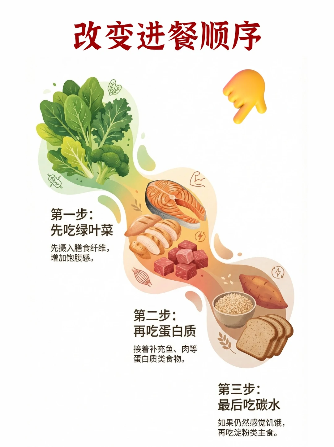记住这个顺序:绿叶菜👉蛋白质👉优质碳水。