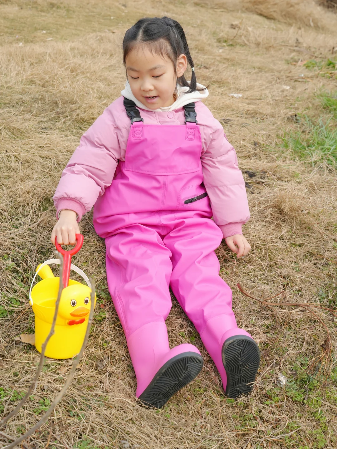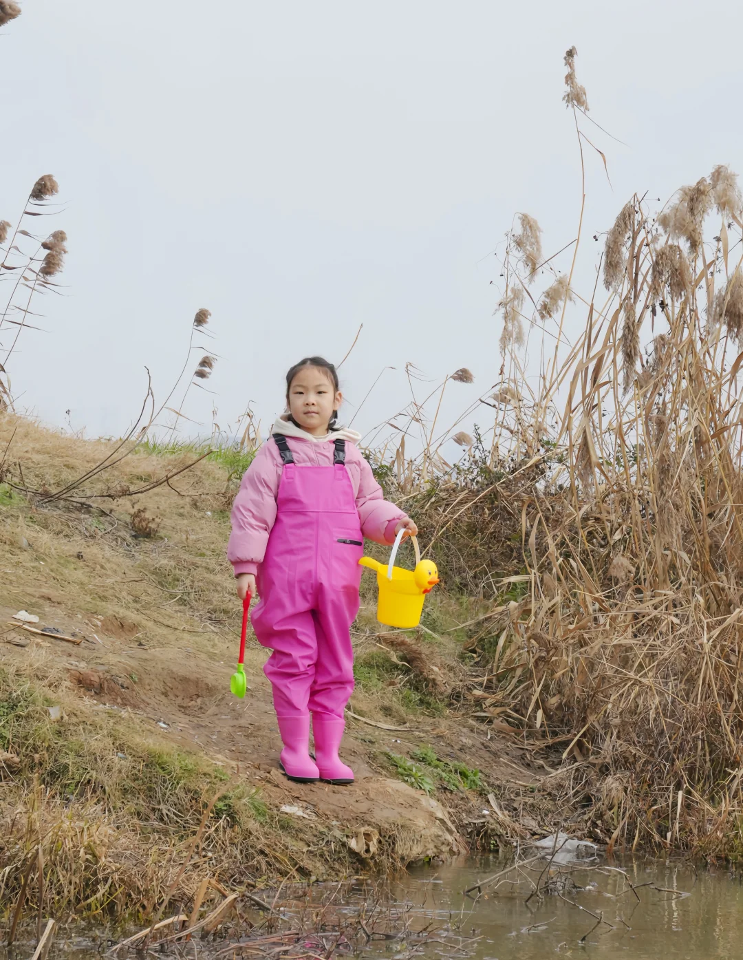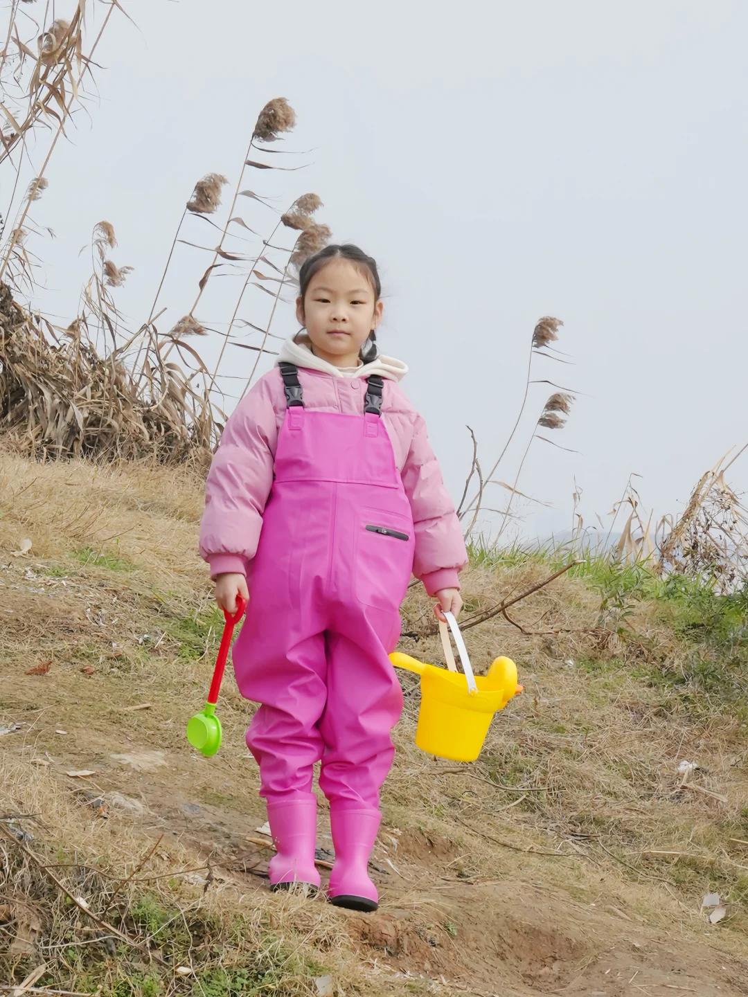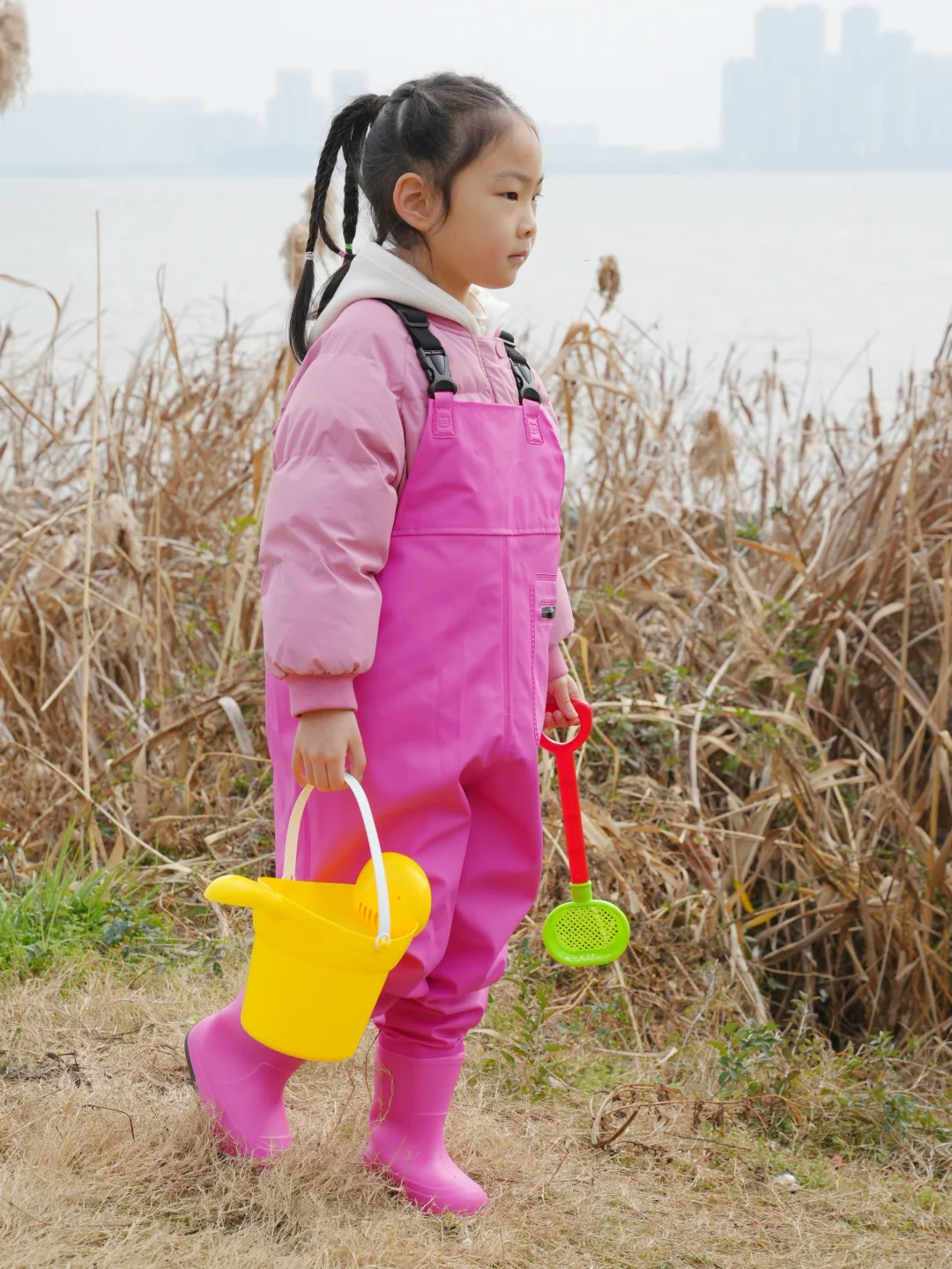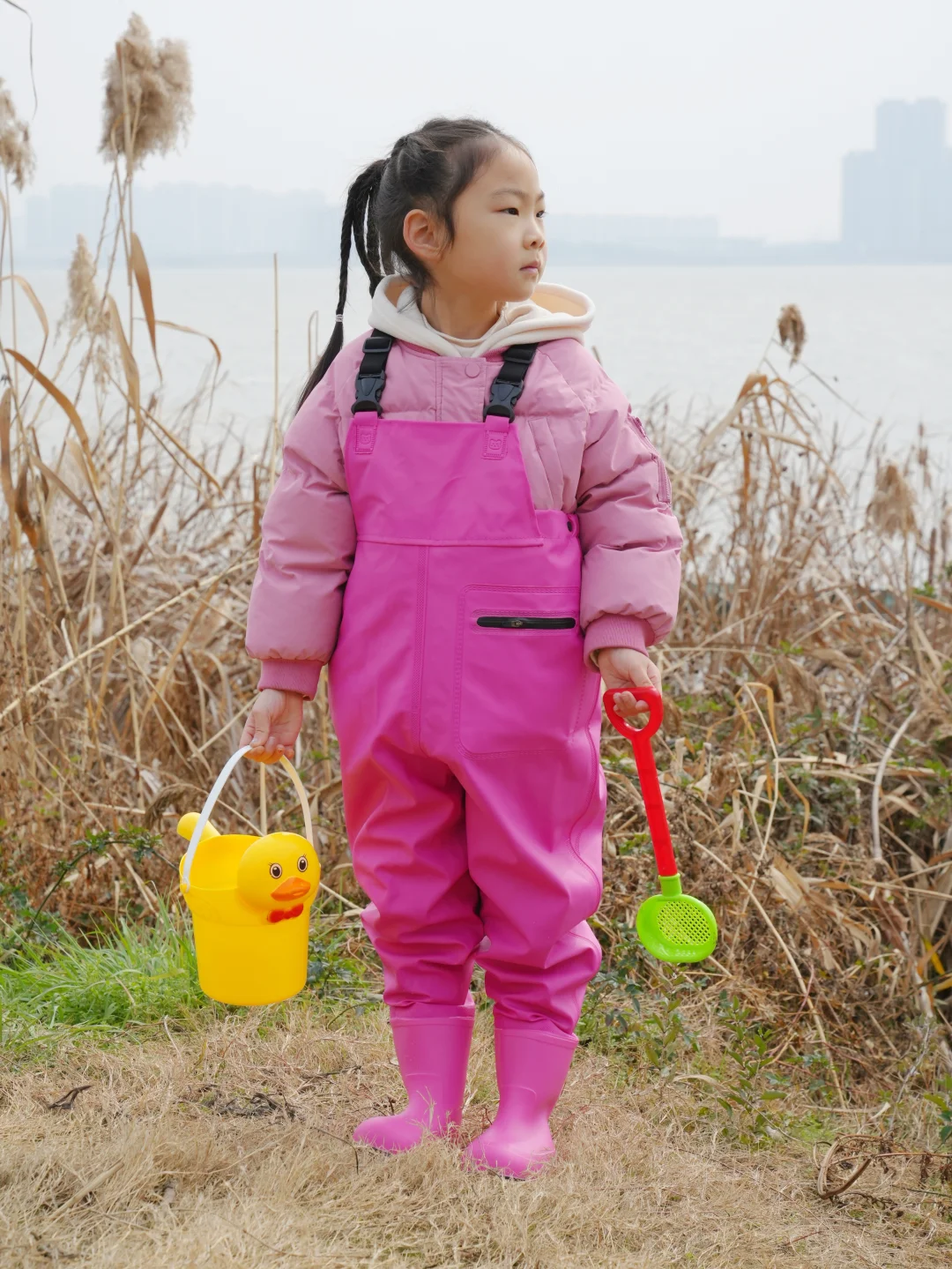 结果刚到湖边——冷风一吹,这位“小勇士”瞬间缩进我怀里:“妈妈…我觉得鱼今天也怕冷…”😅好吧,就知道会这样,但是一定要记录一下,别说这一套挺好看的😊
