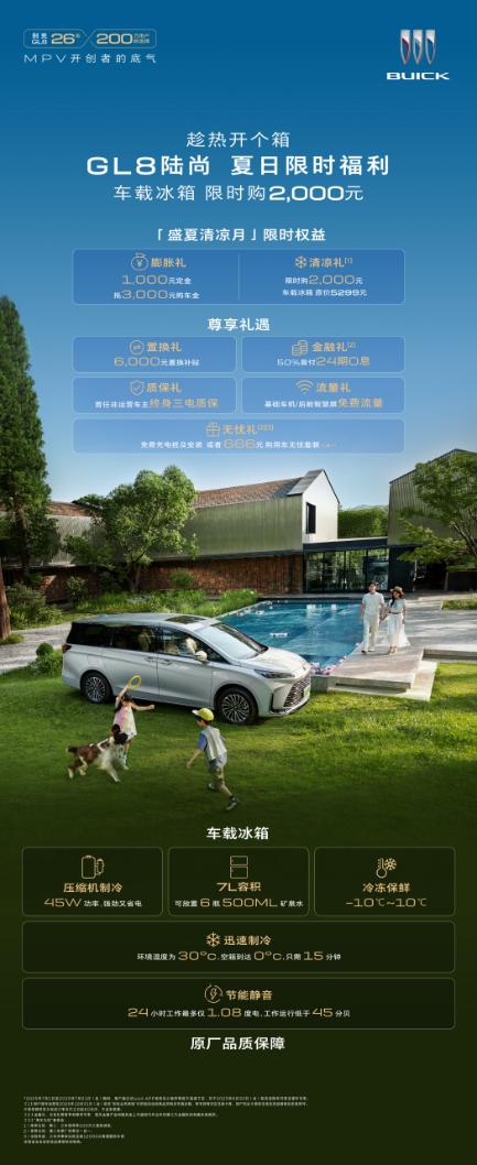 家庭出行新选择,别克GL8陆尚以强劲市场表现引领MPV消费潮流。最新数据显示,GL8家族6月销量突破10576辆,连续三个月稳居"万辆俱乐部",上半年同比增幅高达37.4%,展现出强大的品牌号召力。作为新成员的GL8陆尚搭载创新"真龙插混"动力系统,实现1.25L超低油耗和1420km超长续航,配合三区独立空调和电动侧滑门设计,为全家出行提供贴心舒适的移动空间。正值销售旺季,别克推出"盛夏清凉月"限时活动:7月通过官方渠道购车并在9月30日前完成提车,可享2000元换购7L压缩机制冷冰箱的特权,同时获得膨胀金等五项购车福利。从产品配置到优惠政策,GL8陆尚都展现出超越同级的综合实力。GL8