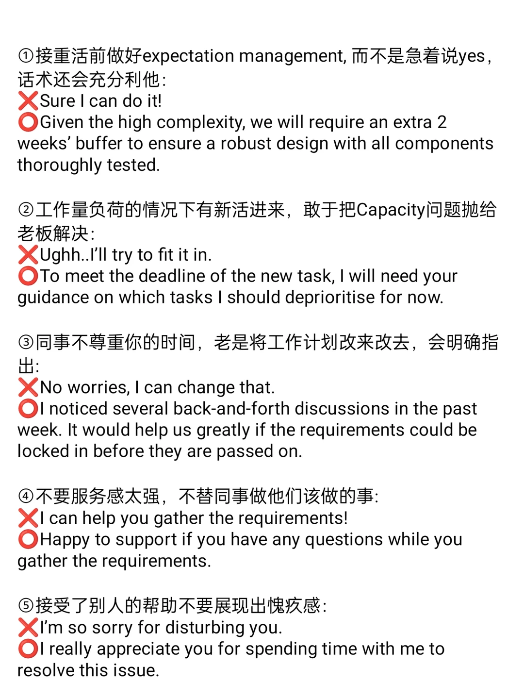 ①接重活前做好expectation management, 而不是急着说yes,话术还会充分利他: