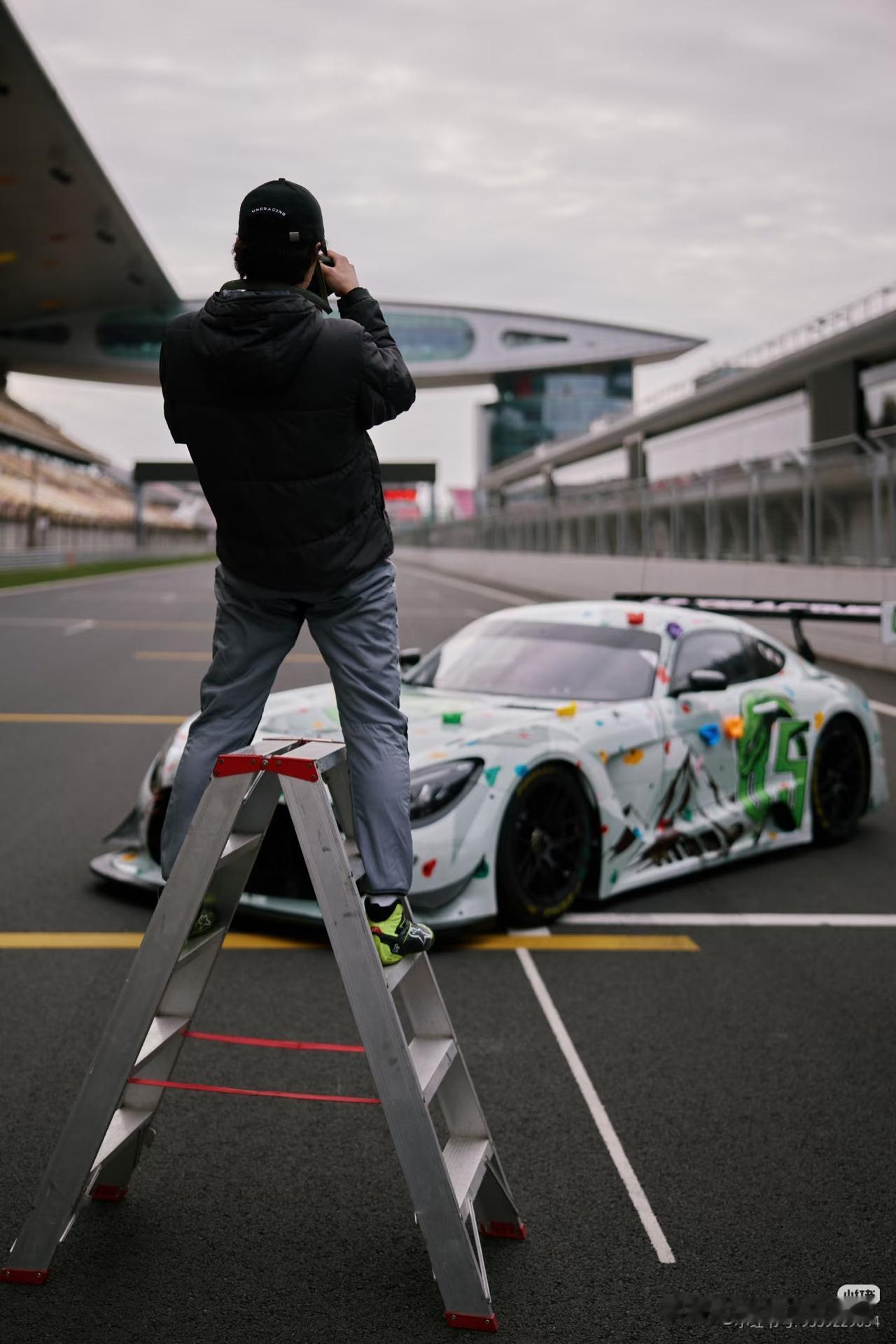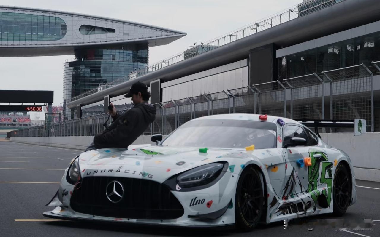 王一博爱摄影,正认真地找各种角度拍摄爱车,看出来对这次新赛车新涂装很满意啦。