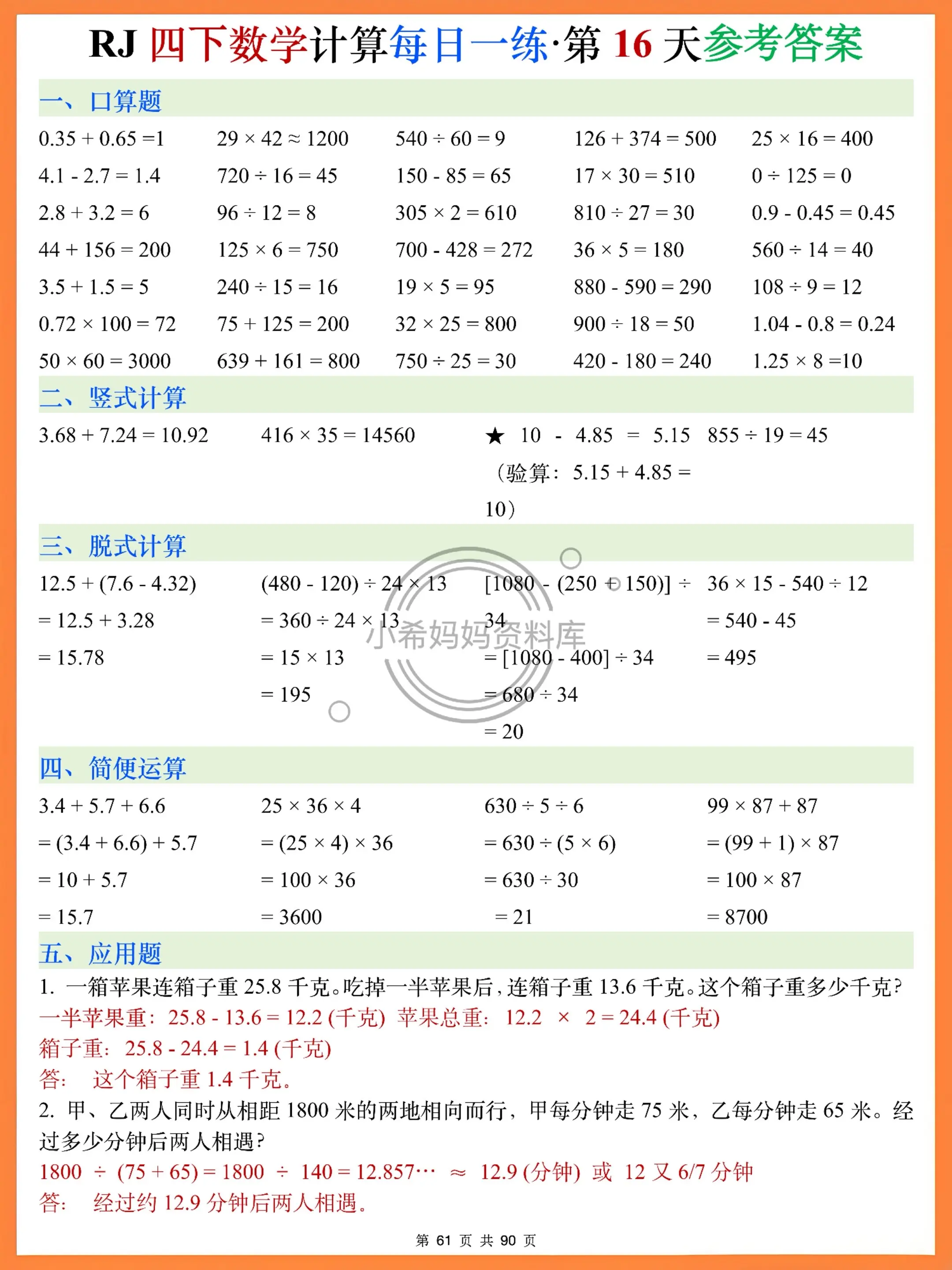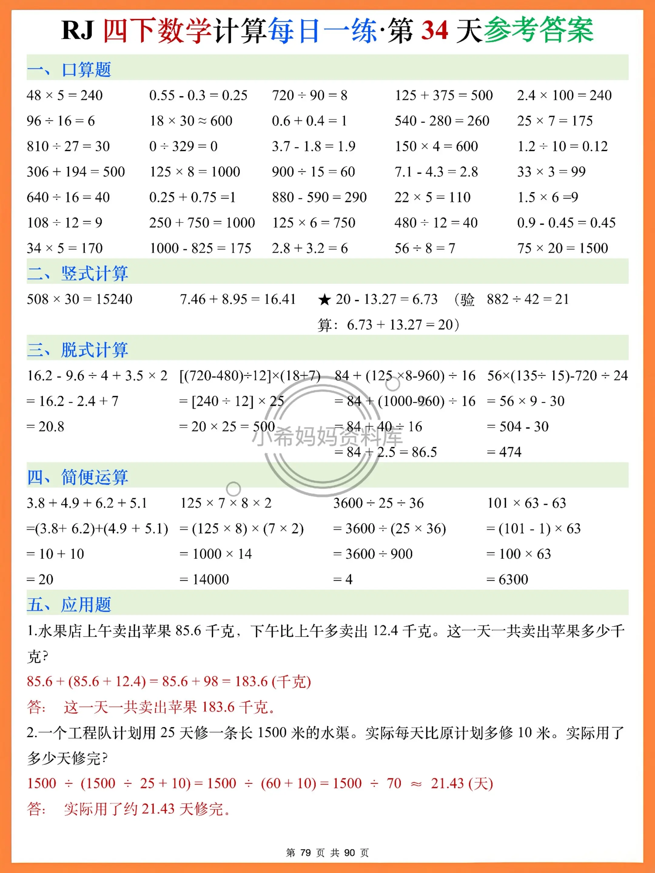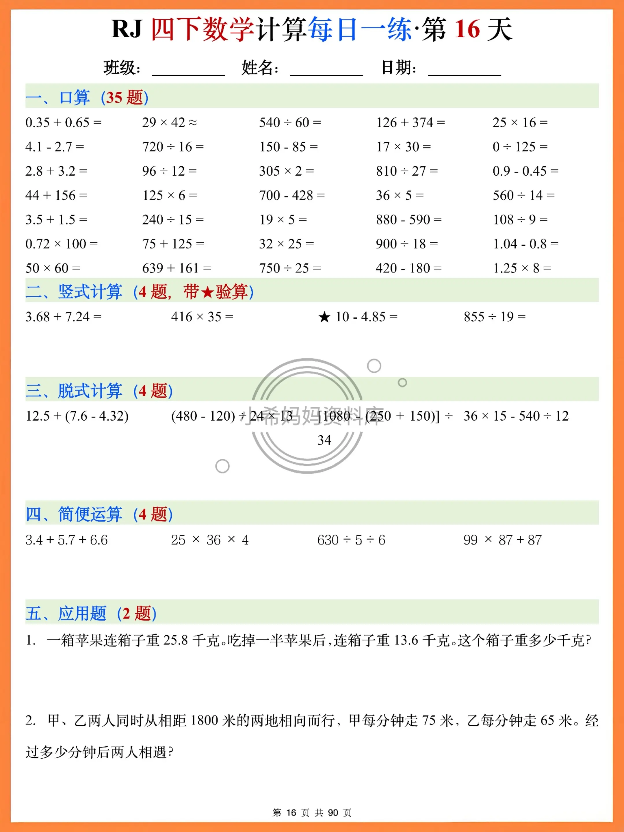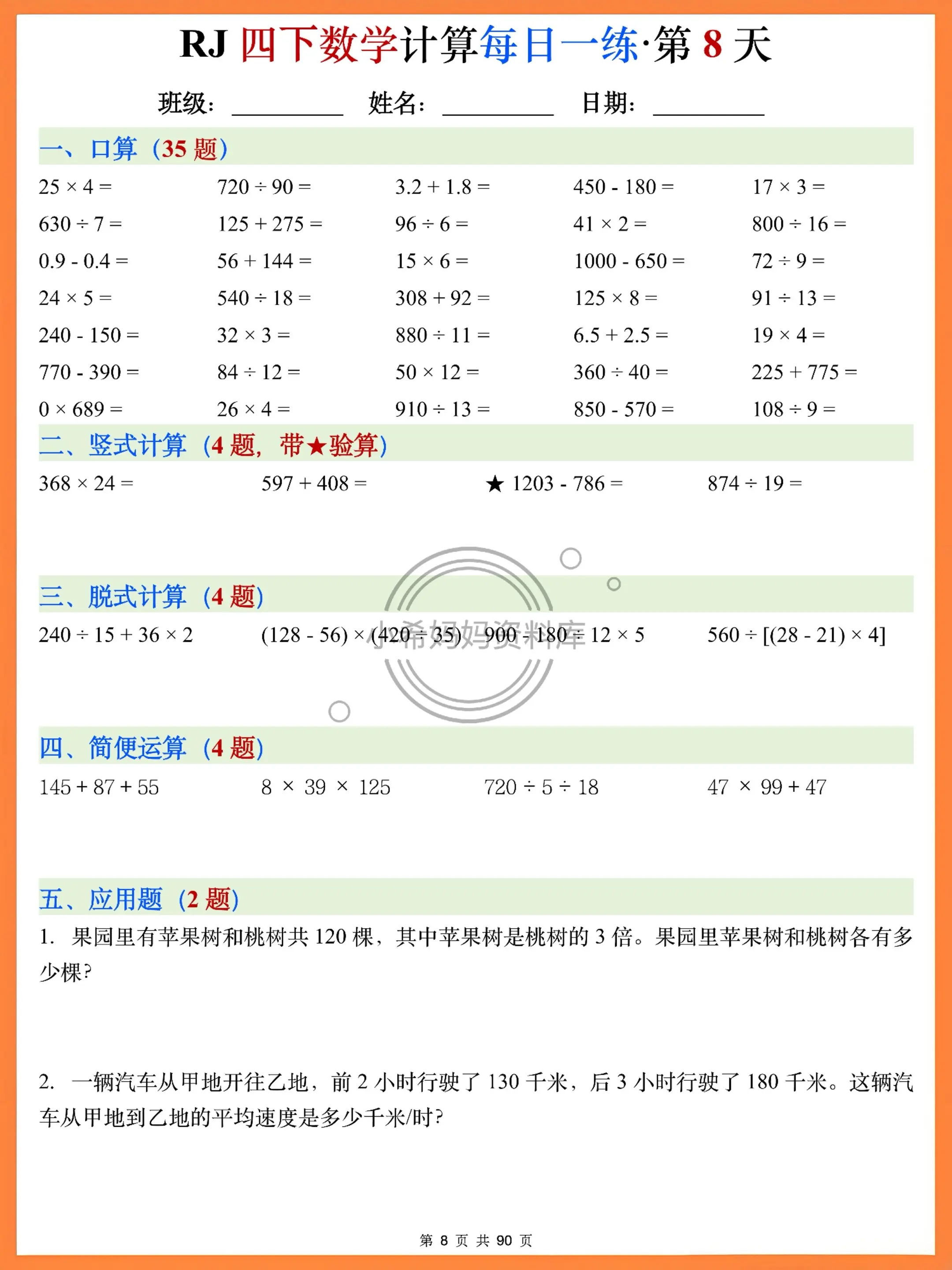 刚开学想让孩子快速进入学习状态,这套每日一练直接封神!35道口算+竖式验算+脱式运算+简便技巧+应用题,5大模块精准匹配2026春季学期课本重点,小数运算、运算定律、高频应用题全覆盖~