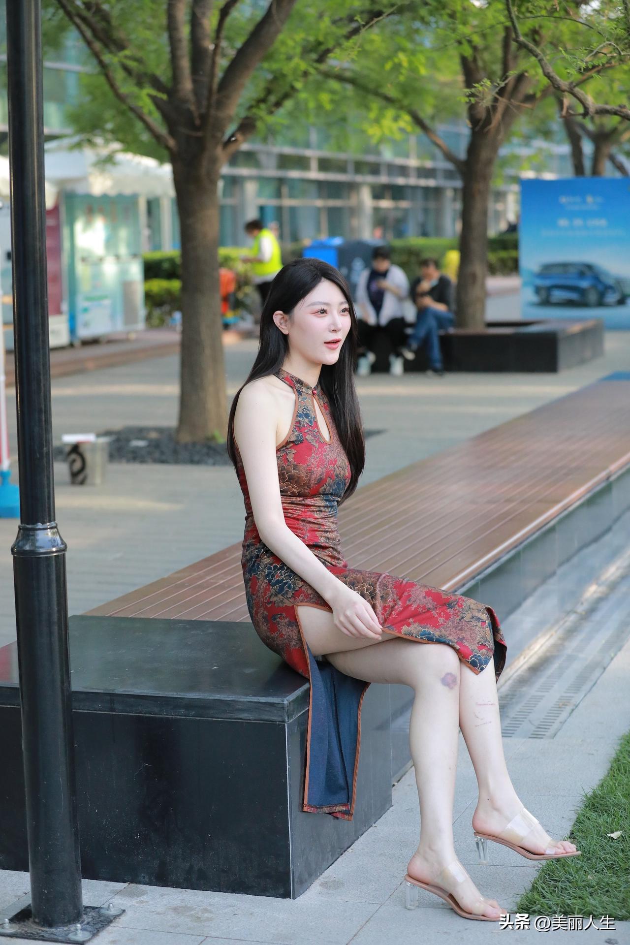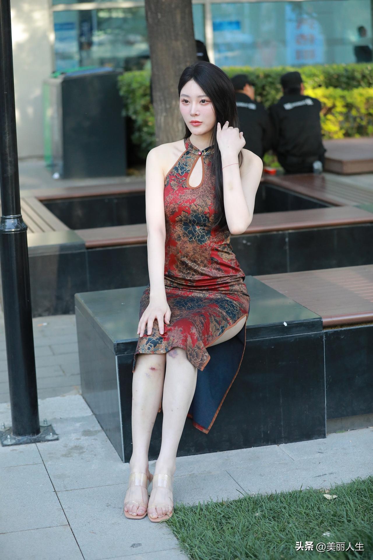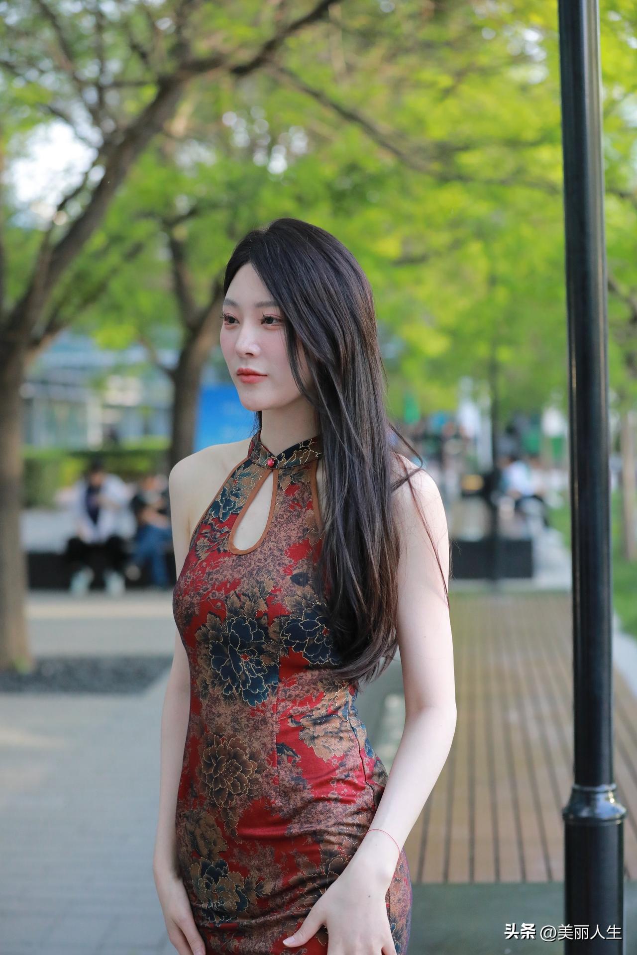 优雅旗袍,都市绿意中绽放迷人风采