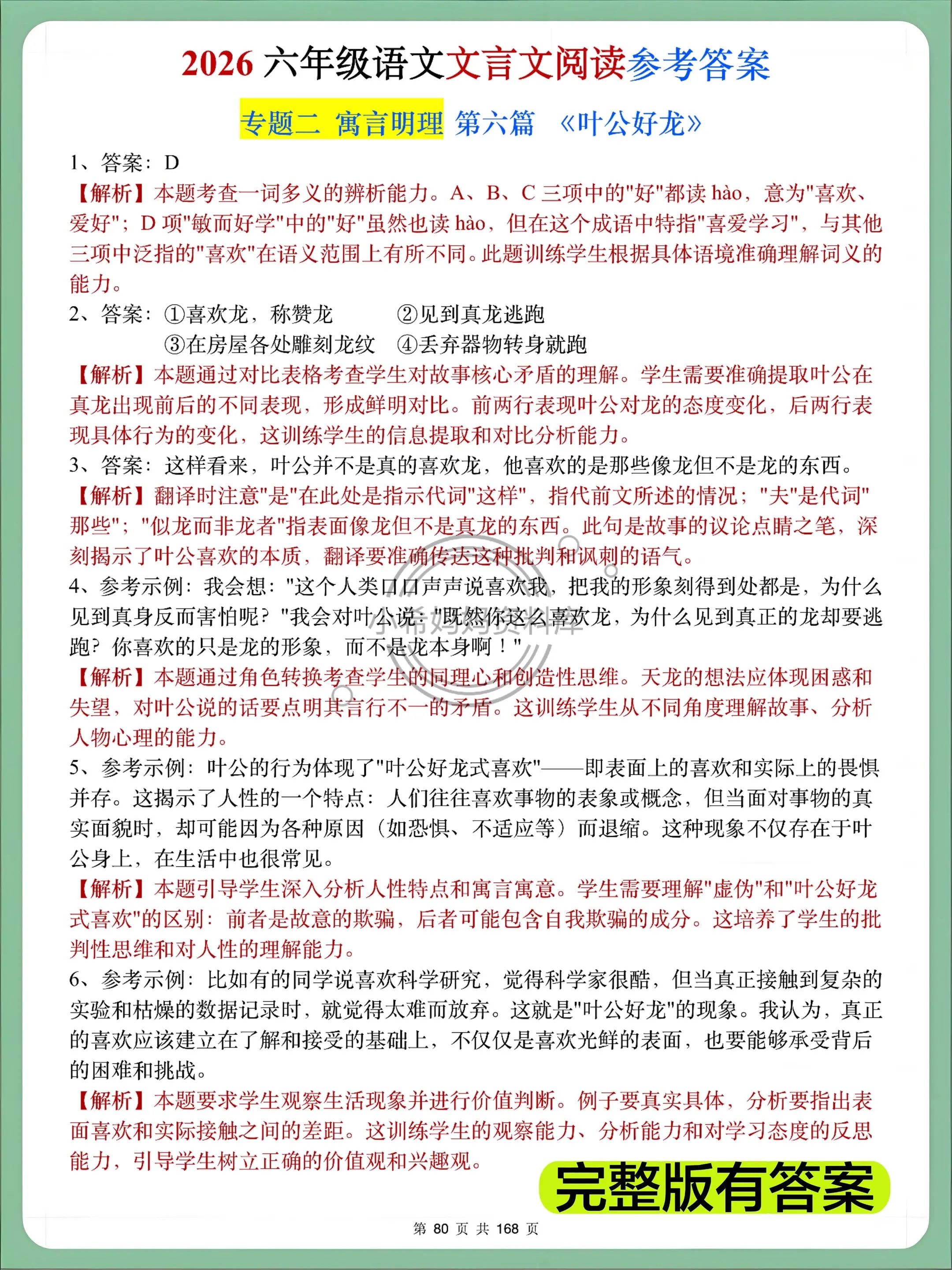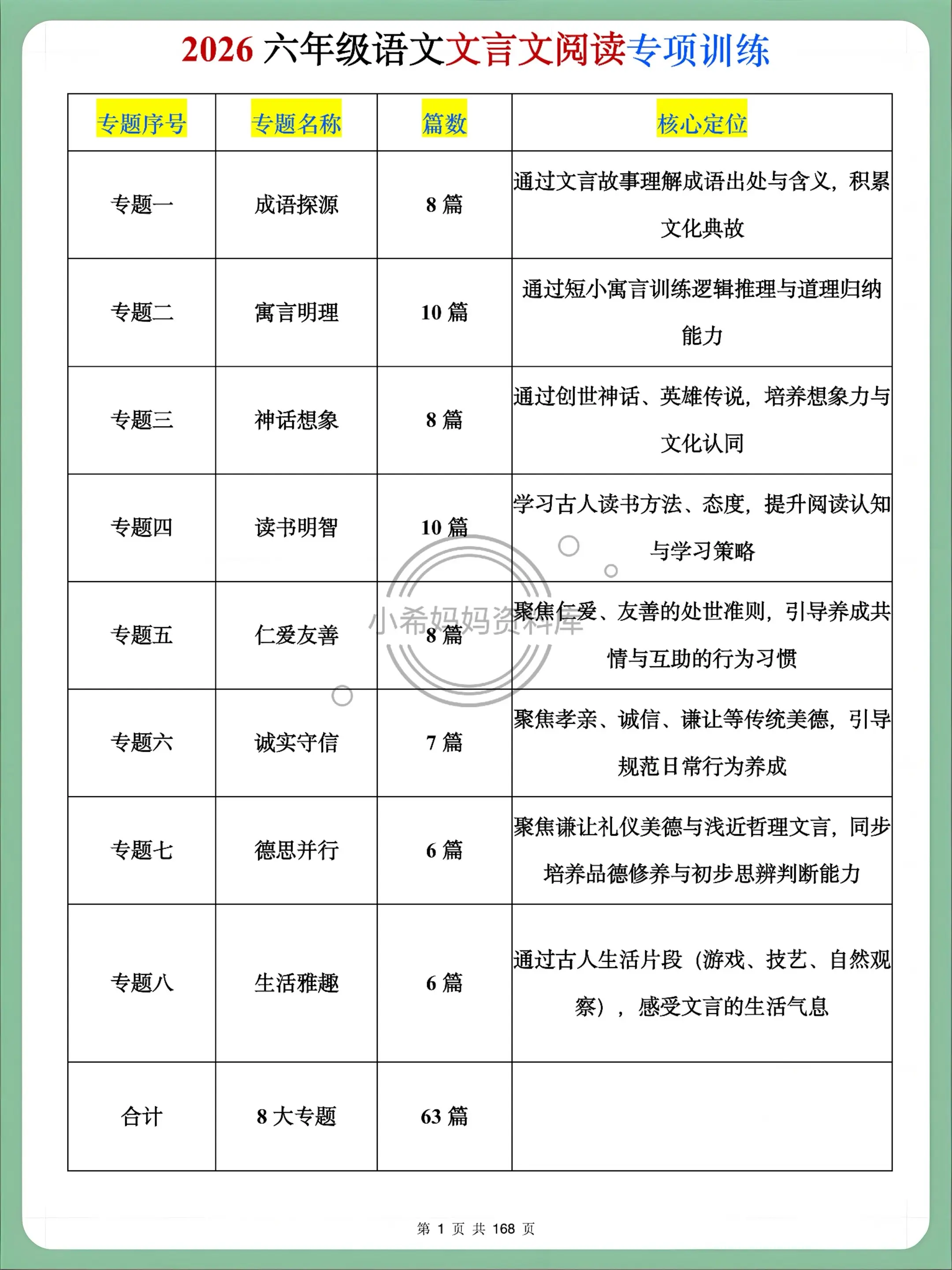 2026六年级语文文言文阅读63篇通练✅。六年级宝子文言文怕脱节?日常刷题这份就够!