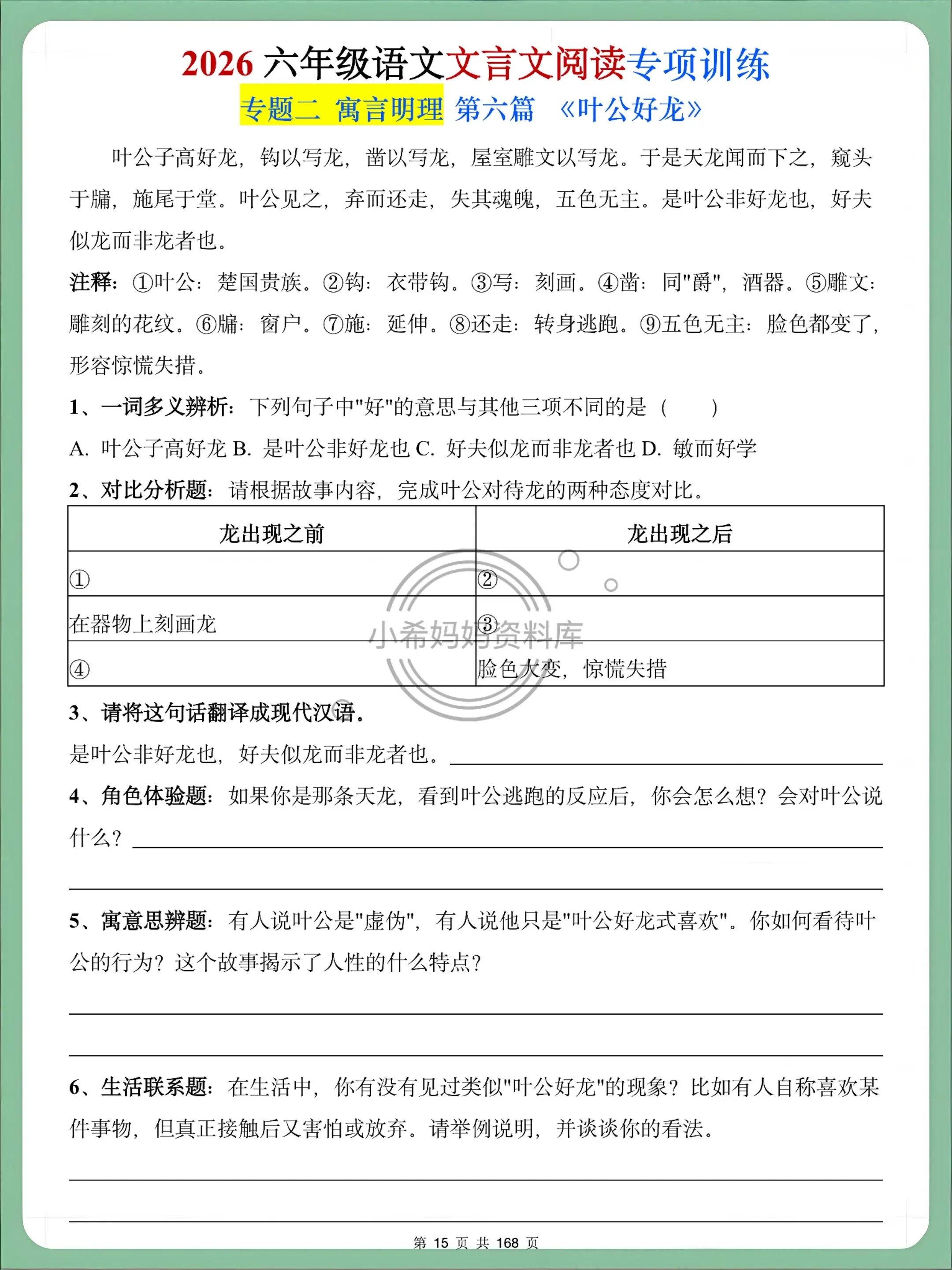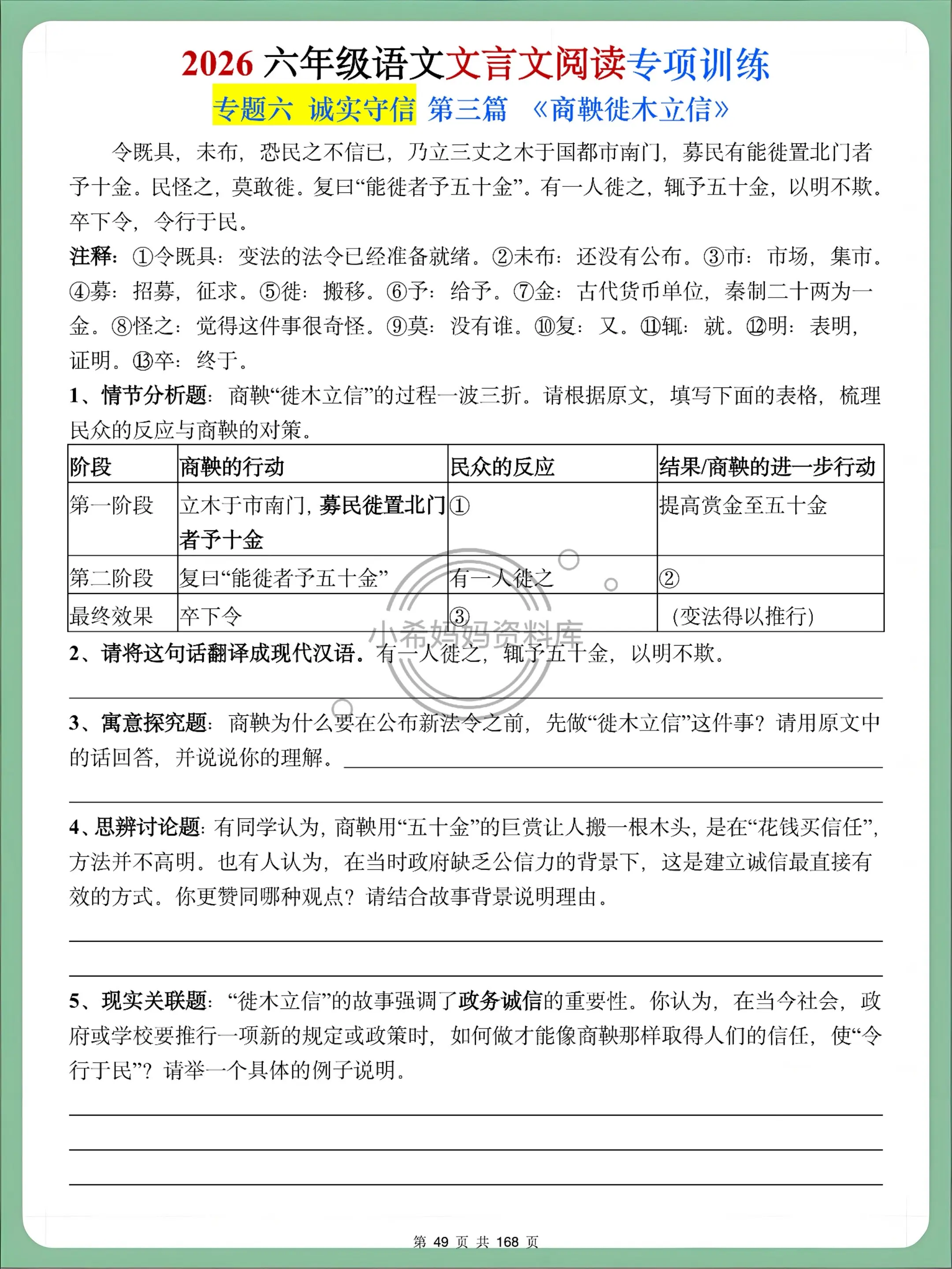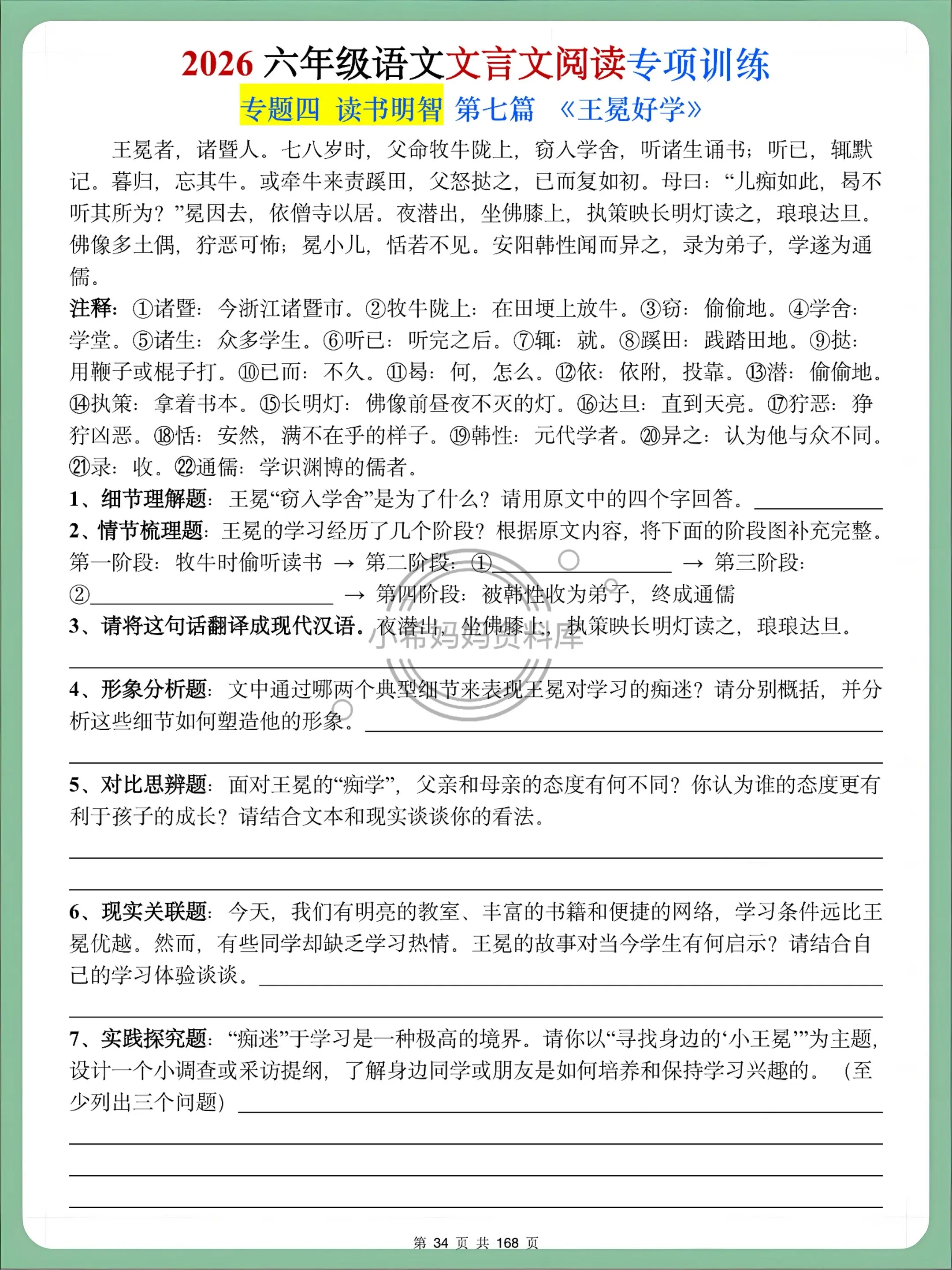 ✍️ 题型拉满:翻译、断句、简答+拓展题,贴合课堂检测