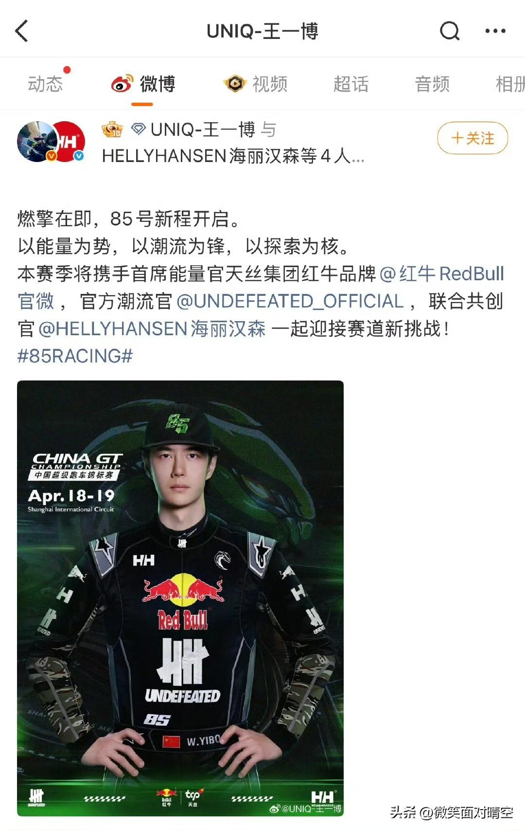王一博官宣2026新的赛车手形象。
