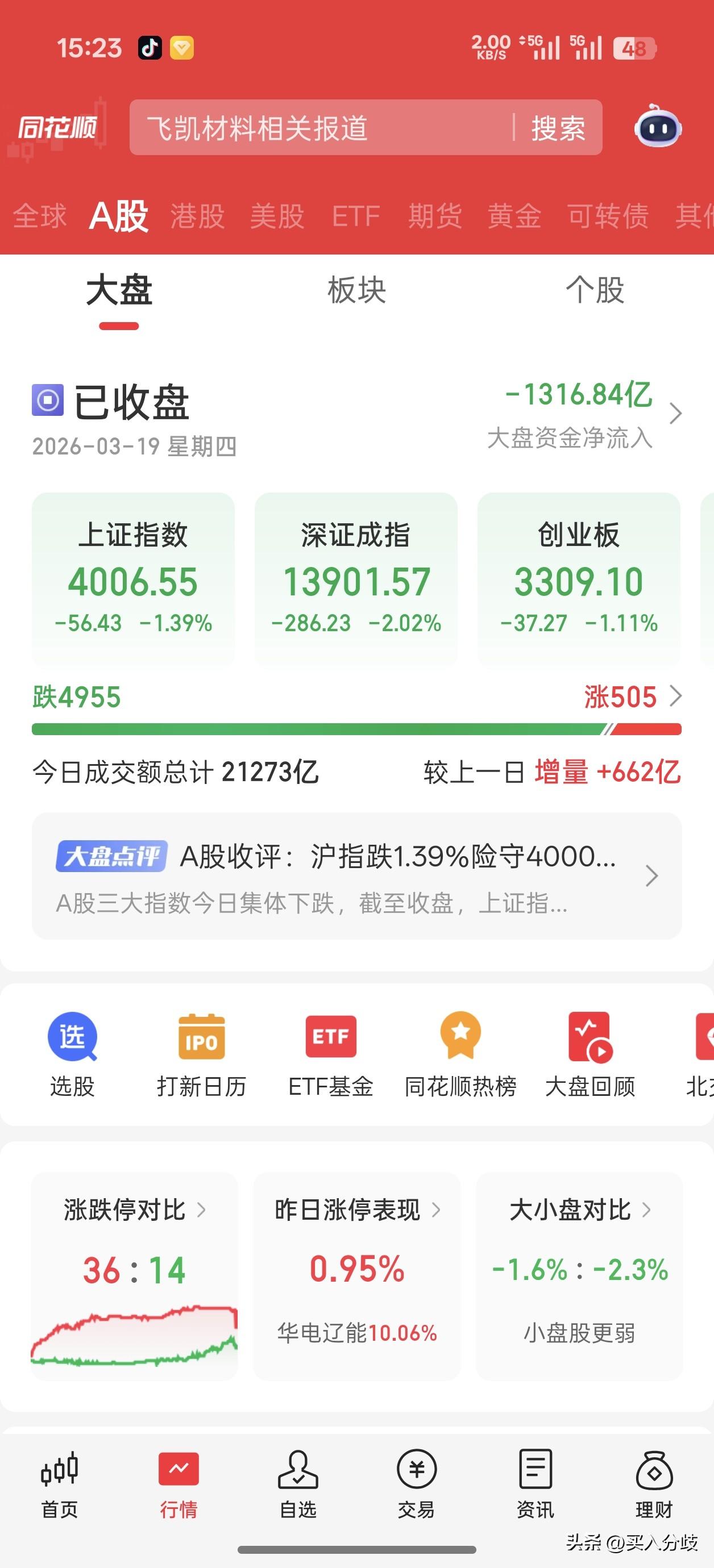 黑色周四再度上演,4000点盘中跌破,尾盘勉强收4006点,创2026年新低。个股中位数跌幅2.5%,石油、燃气、电力、银行等权重护盘,个股一片惨淡,两市近5000家下跌,可以说一片哀嚎。两市成交2.1万亿,微微放量。