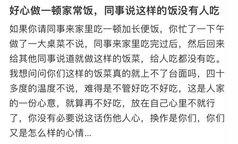 好心做一顿家常饭,同事说这样的饭没有人吃