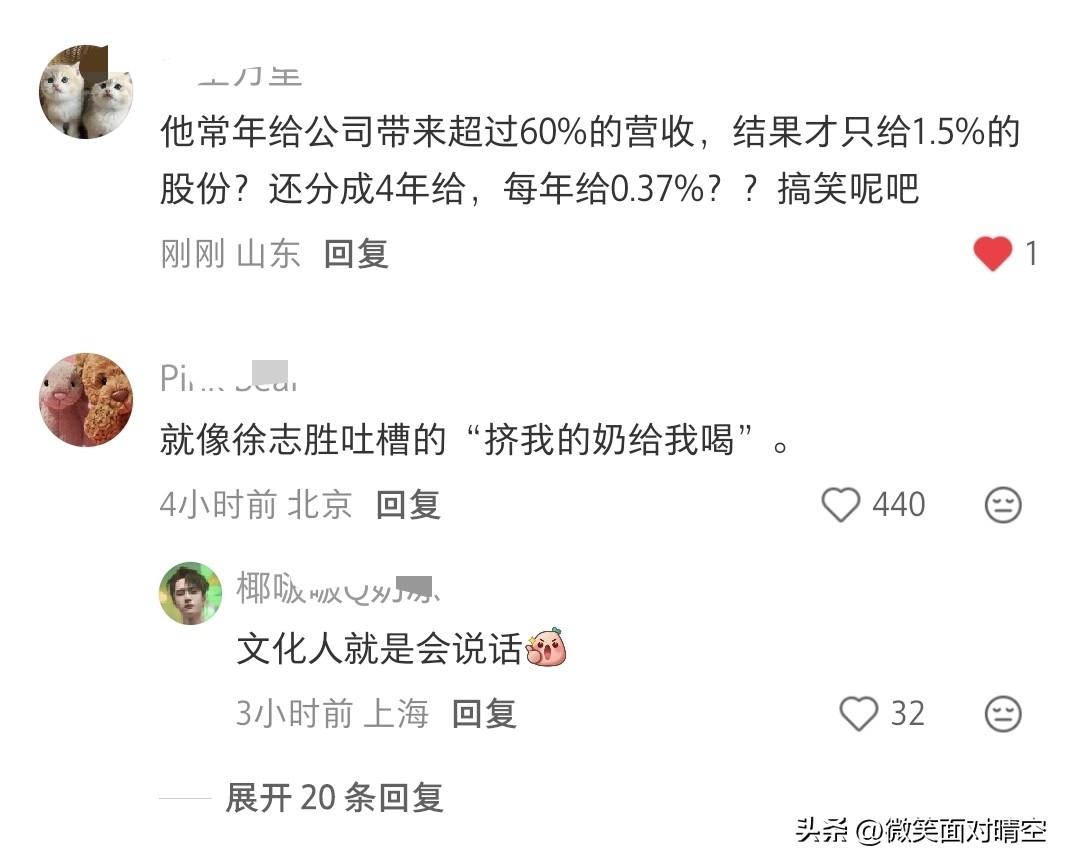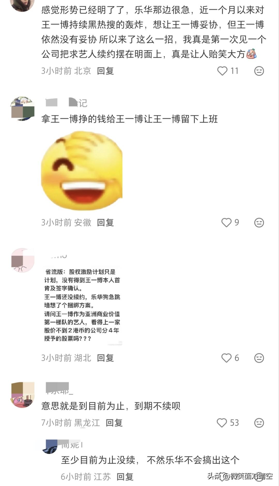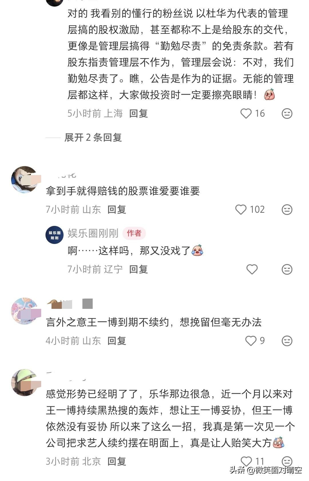 怎么看待乐华给王一博1.5%的股权激励?广大网友的评论精彩又全面[大笑]