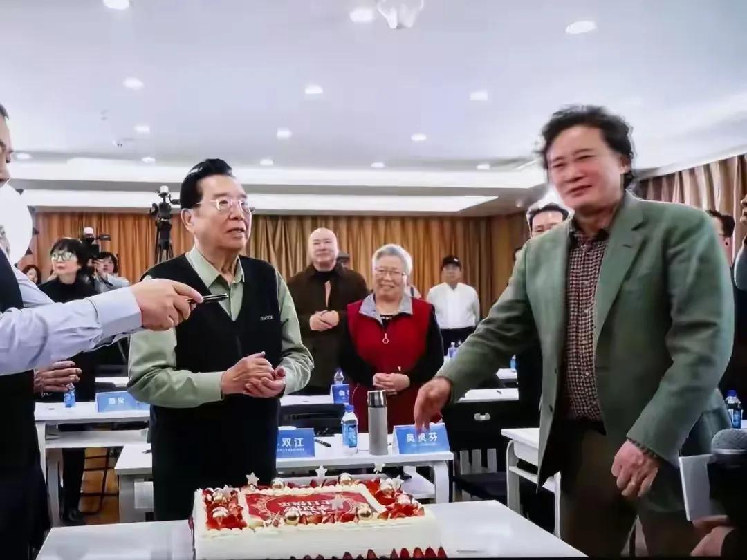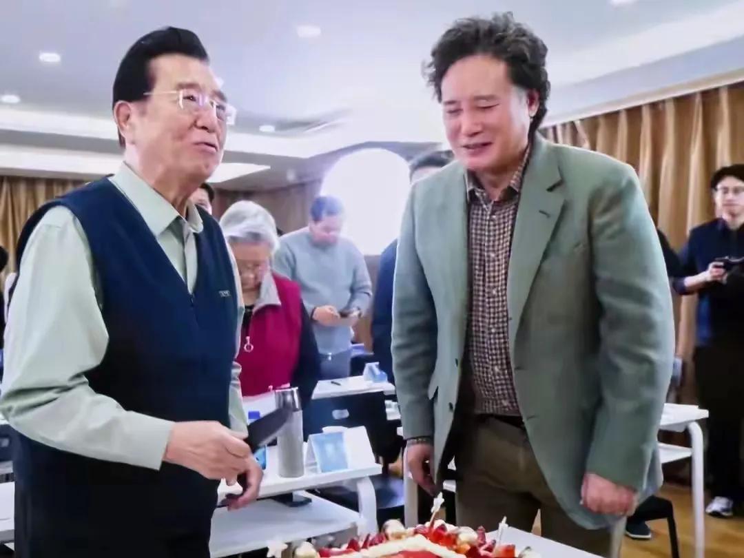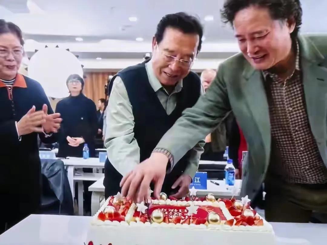 生日宴布置得挺温馨,桌上蛋糕写着“一代歌王,李双江,生日快乐”,算是对他艺术生涯的一种致敬。学生戴玉强在一旁帮忙切蛋糕,妻子梦鸽轻声哼唱生日歌,场面温暖热闹。这些年,随着时间向前,他状态似乎比前些年要松弛一些。人生起伏难免,到了这个年纪,能有学生、老友相伴庆生,何尝不是一种平静的福气。看着这一幕,或许也会让人有些感慨——时光会带走许多,但此刻的陪伴与祝福,总是真实的。