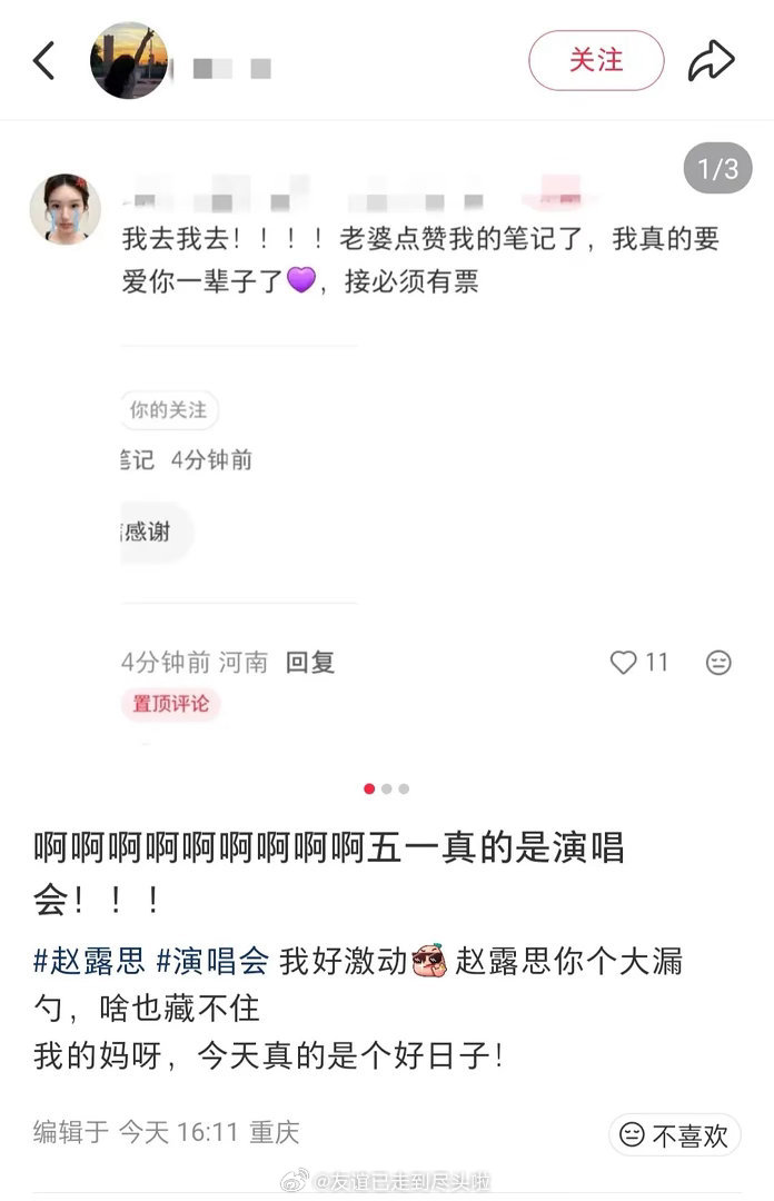 赵露思五一要开演唱会点赞粉丝的笔记了,官方盖章赵露思全新单曲别装了