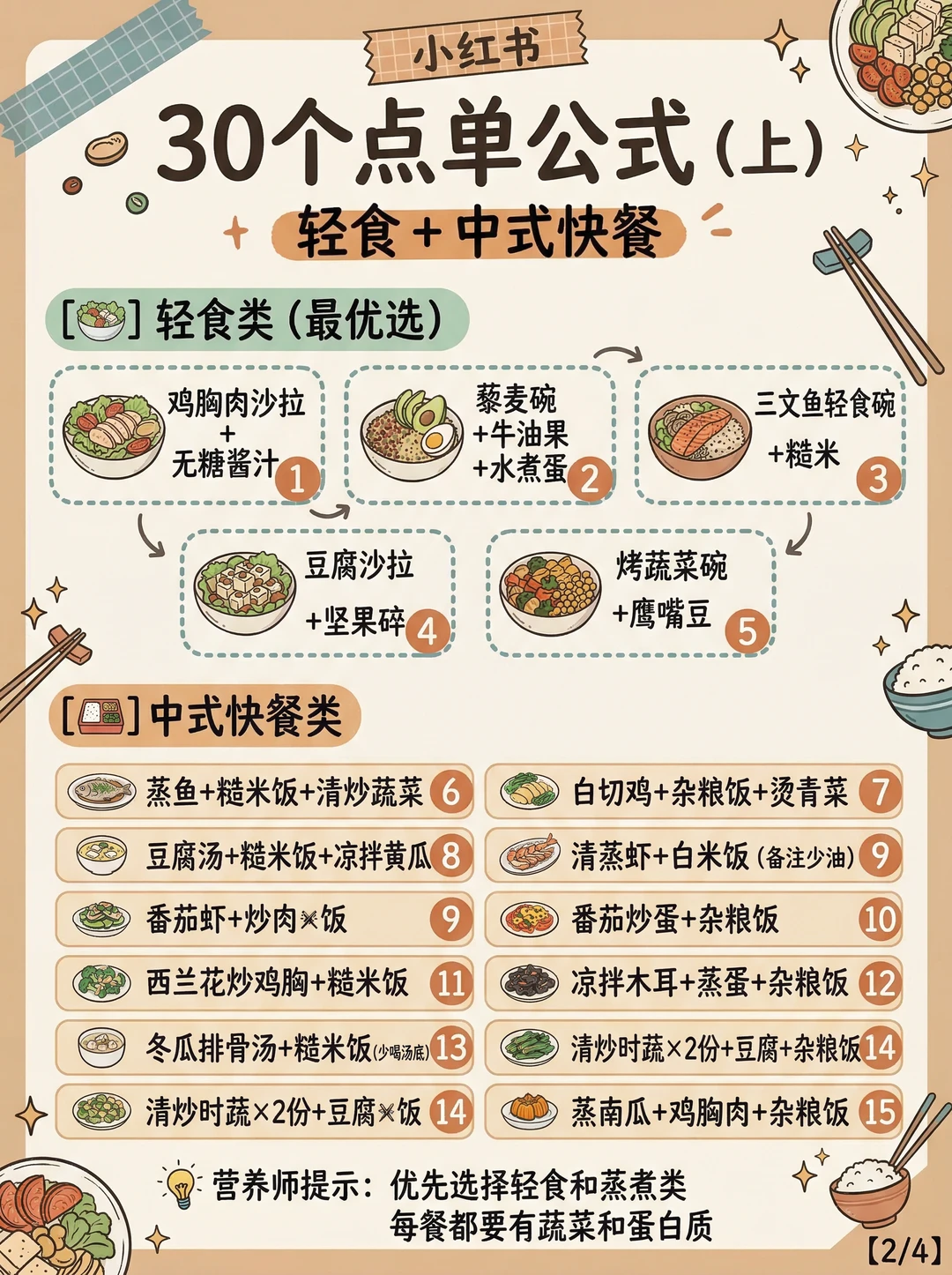 ✅ 蔬菜:每餐至少点1份独立蔬菜,不能只靠配菜