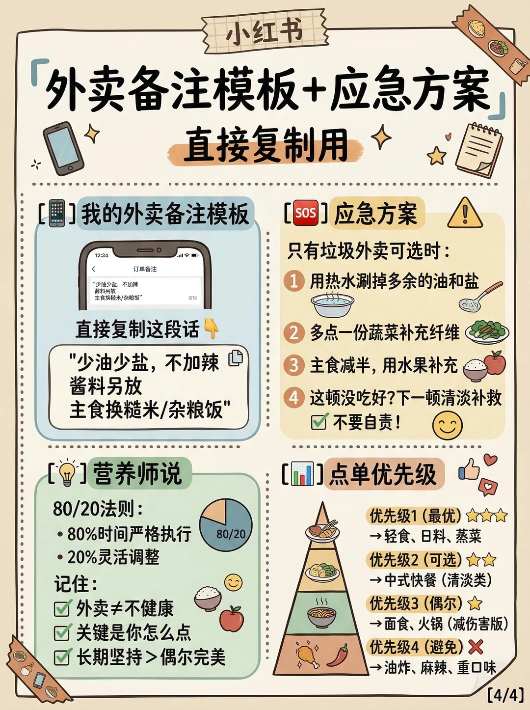 📌我的外卖备注模板:少油少盐,不加辣,酱料另放,主食换糙米/杂粮饭