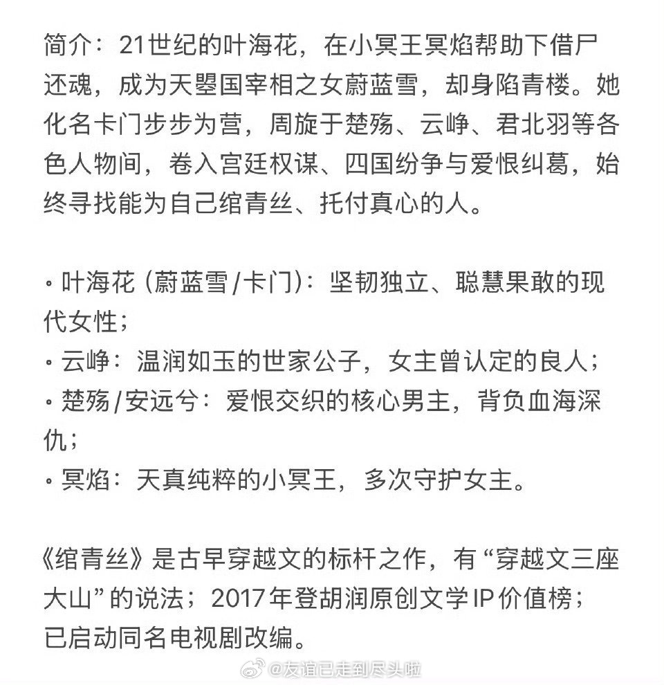 爆《绾青丝》是闫桉的那个瓜主,评论说女主不是网传的赵露思古早虐女文,确实不像赵露思现在喜欢的类型