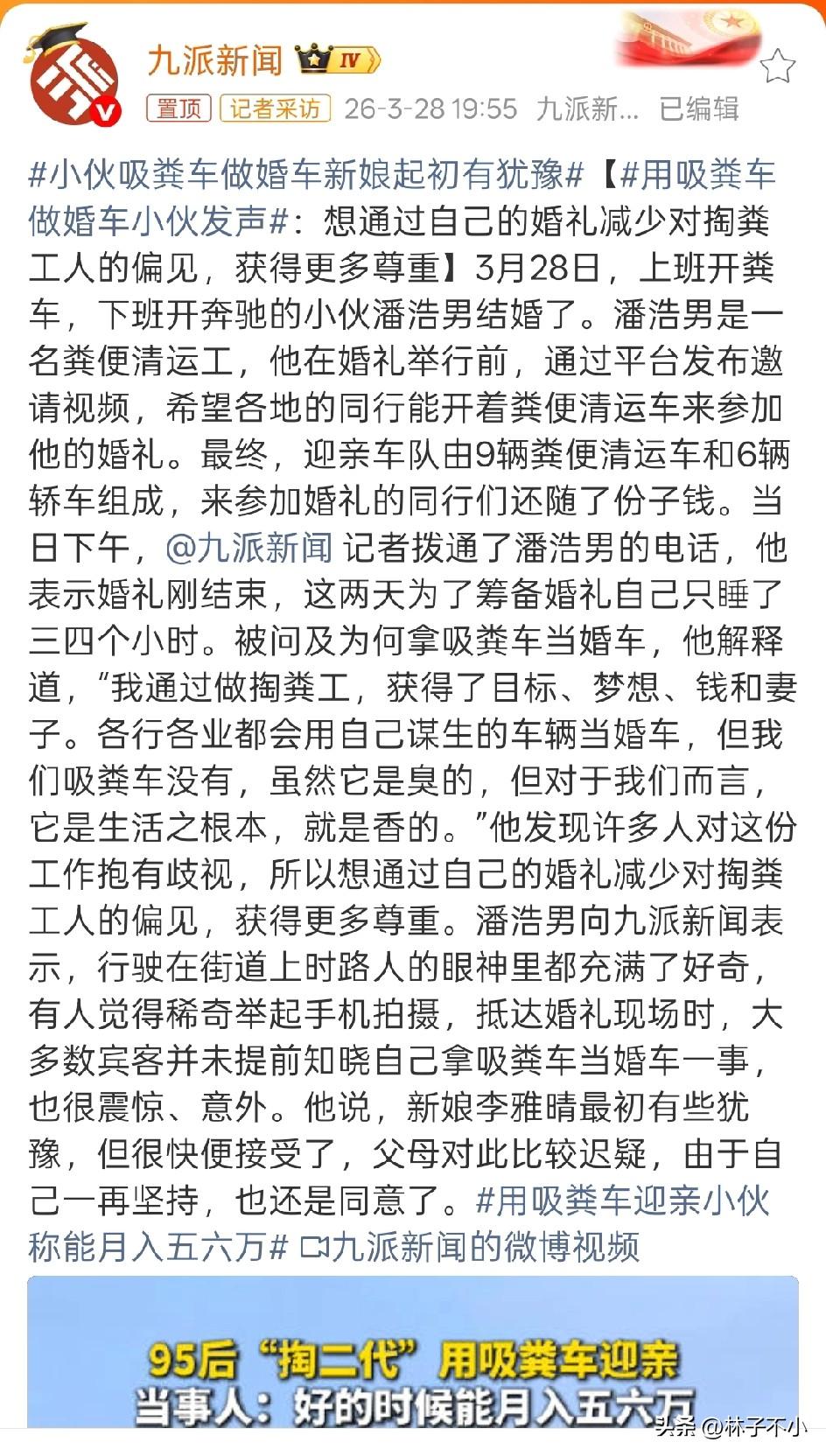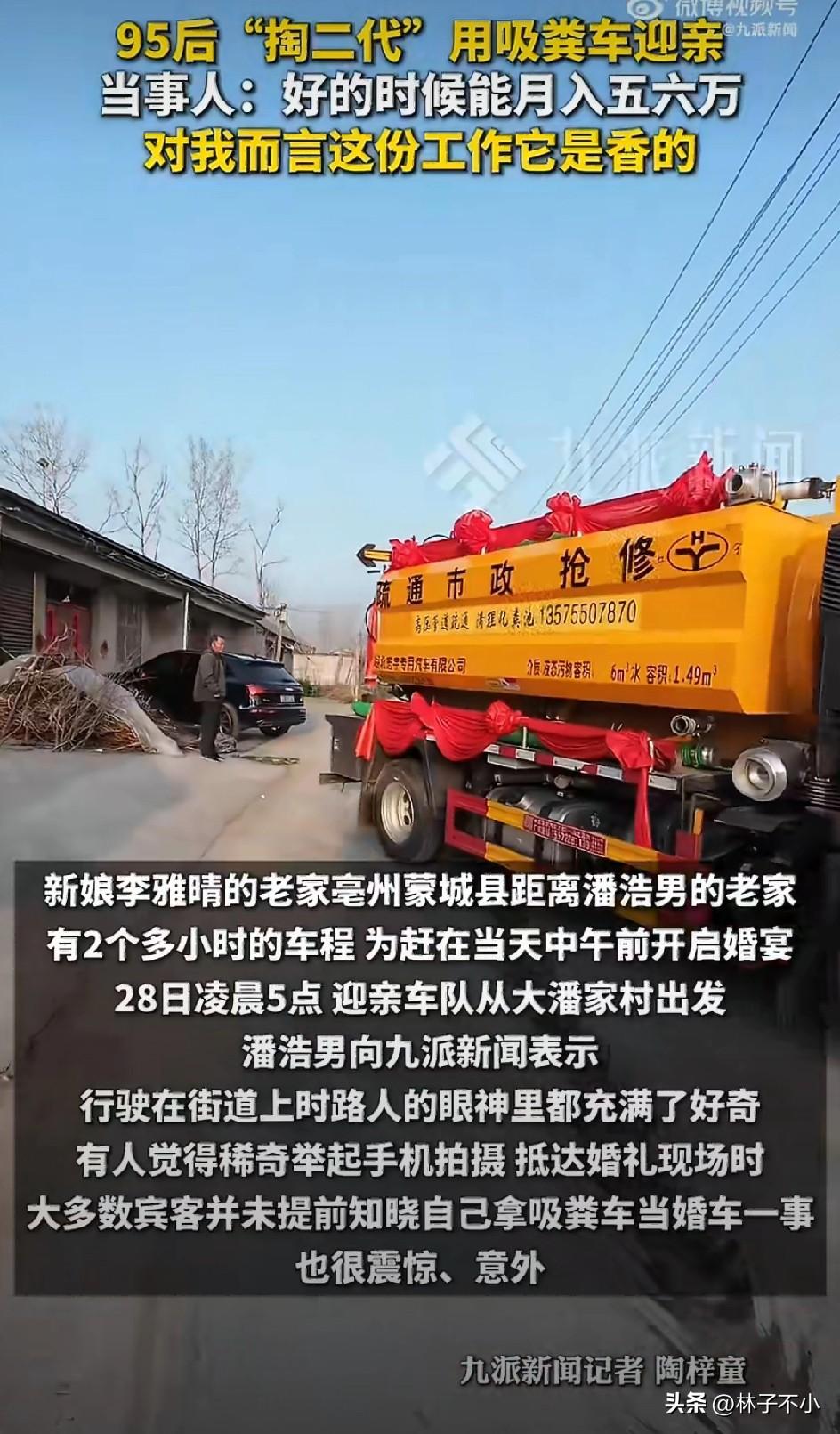 3月28日,九派新闻报道了一个惊人的新闻:用吸粪车做婚车小伙发声。
