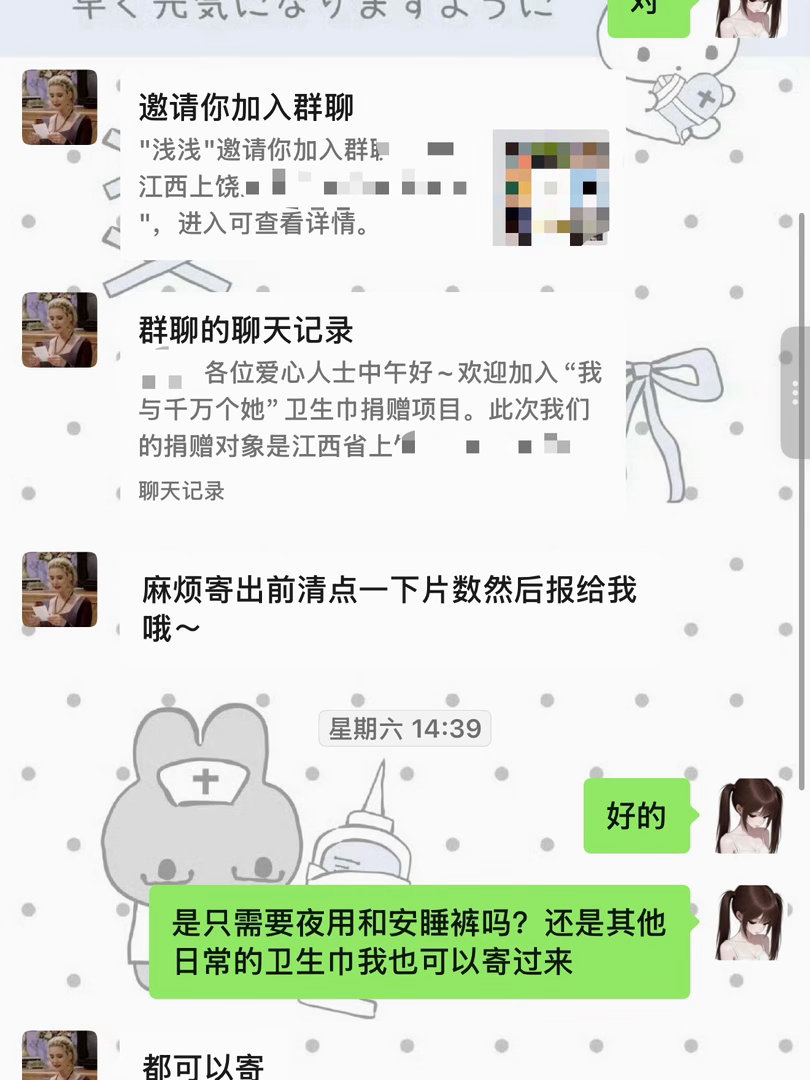 之前的卫生巾寄出去啦这次就让我当一个中转站咯 全都是你们的心意!你们特别棒!