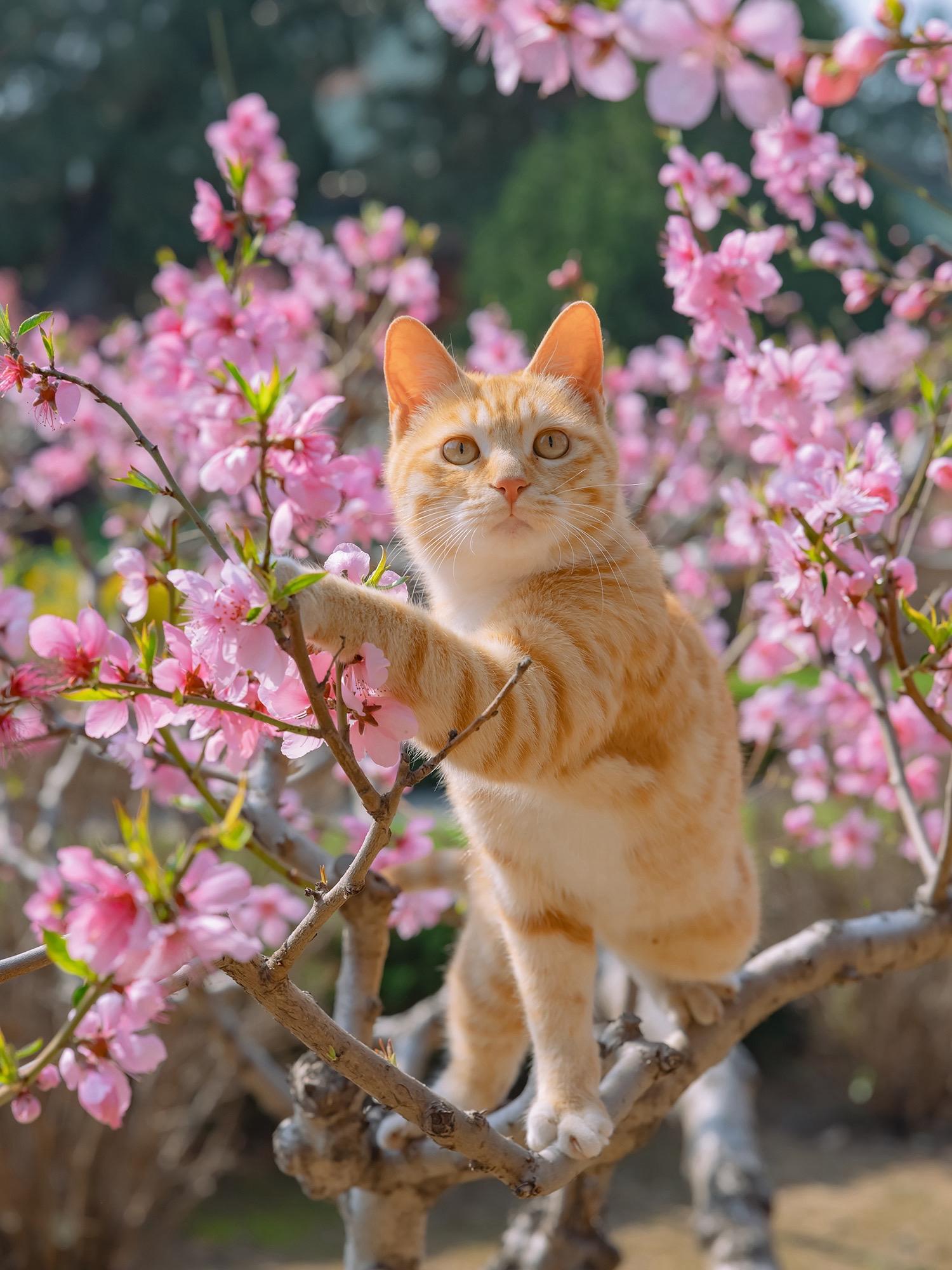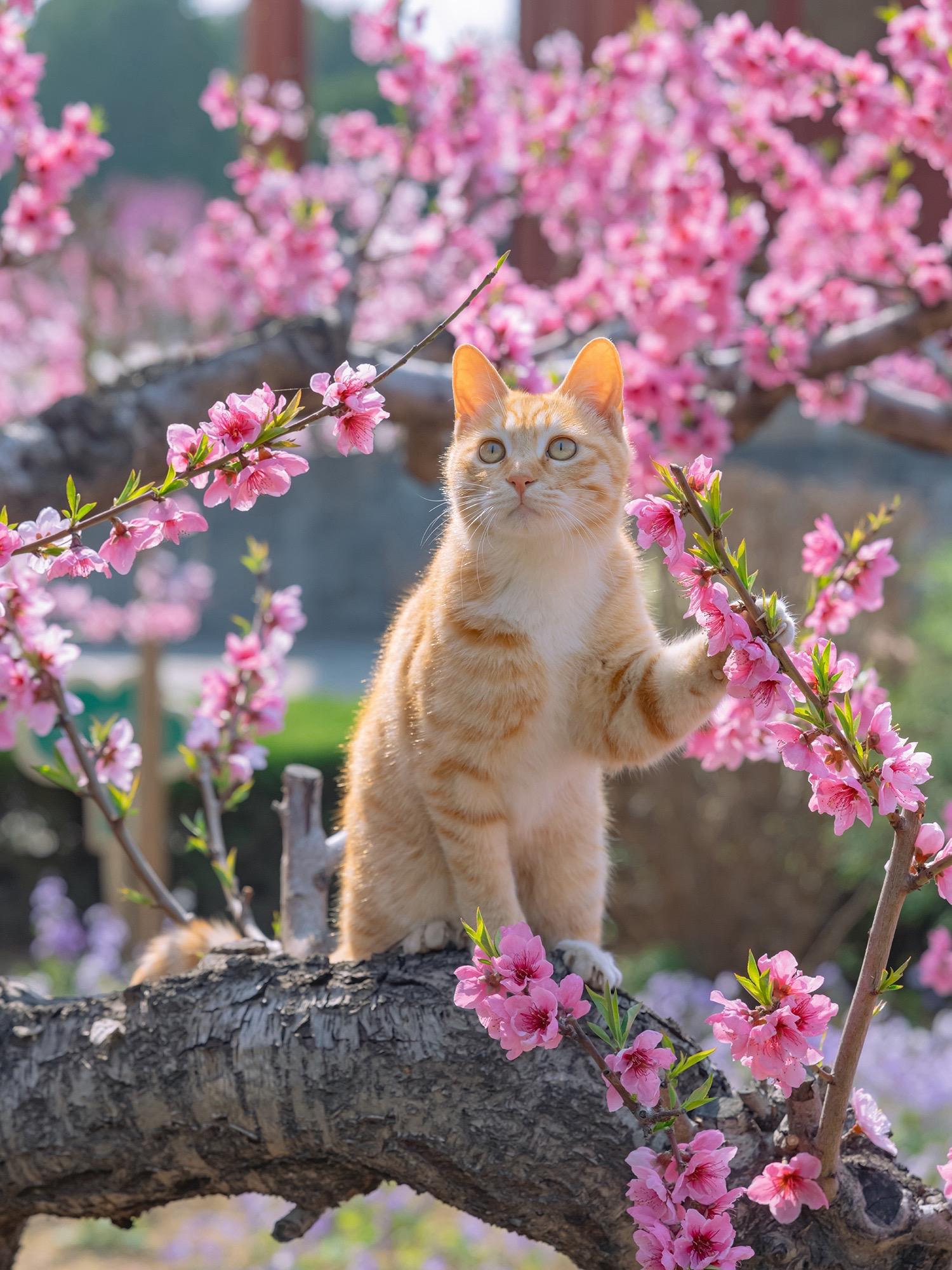 桃花和猫果然是绝配。春天最想拍的当然是花花了