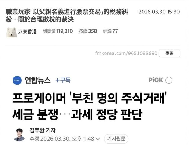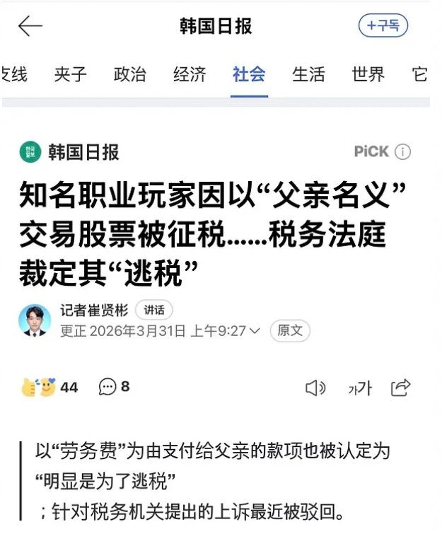 韩国头部财经媒体《每日经济》:「赛场所向披靡,税务一败涂地」… 知名职业电竞选手借父亲名义偷逃股票税款
