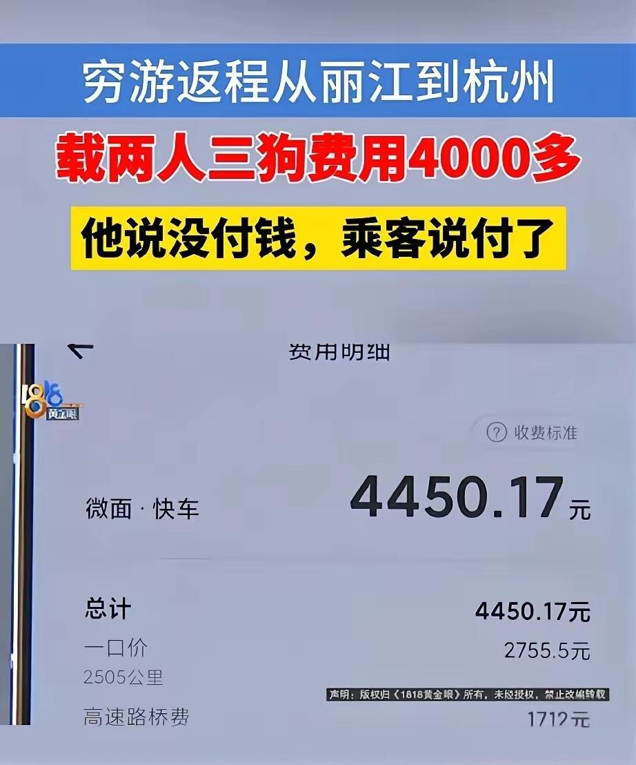 “想白嫖?”杭州司机送两名女子带三条大狗从丽江到杭州,开了两天两夜,4450元运费一分没收到!平台:对方根本没付
