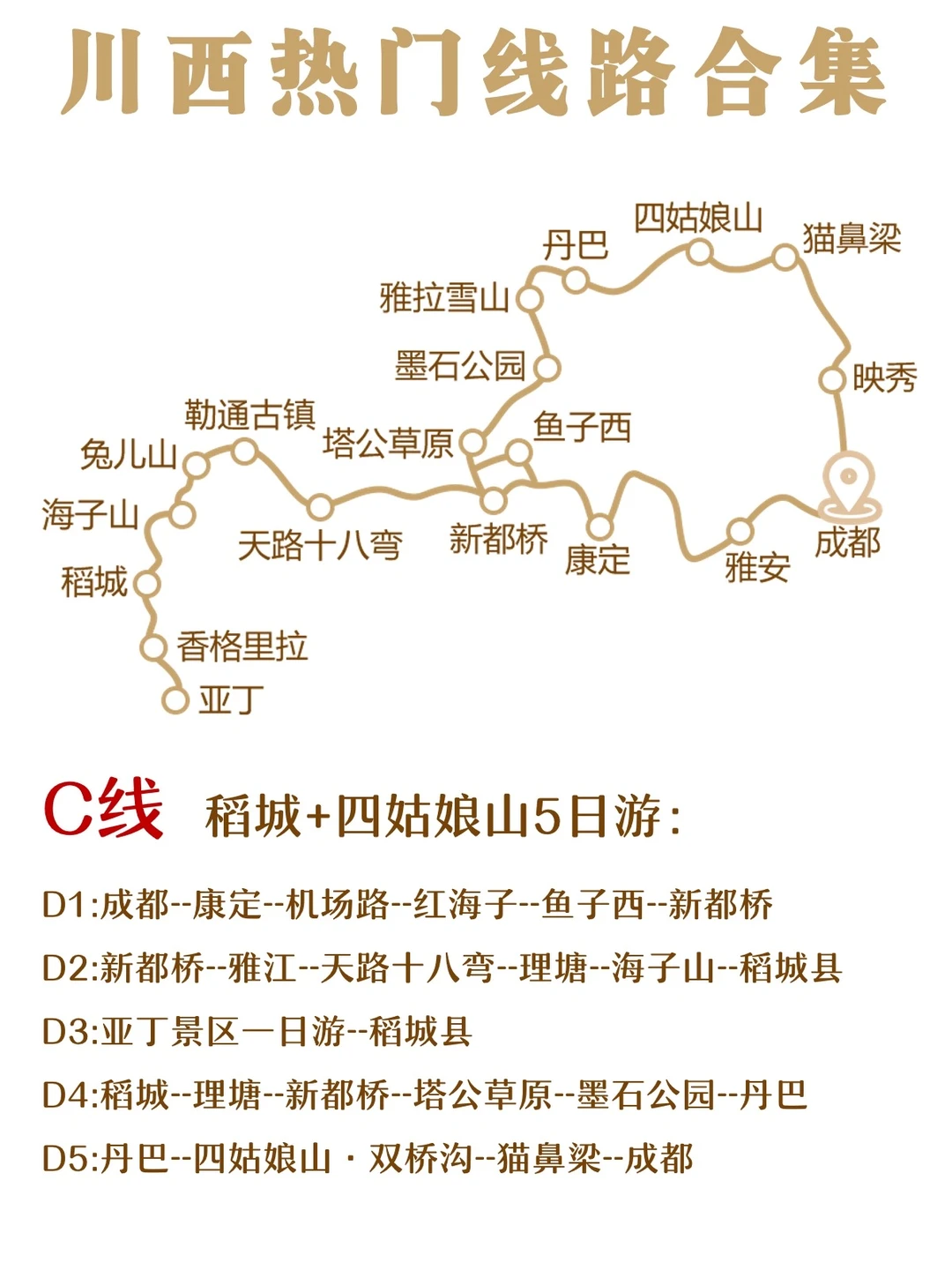 D3:新都桥--红海子--434机场路--木格措--成都