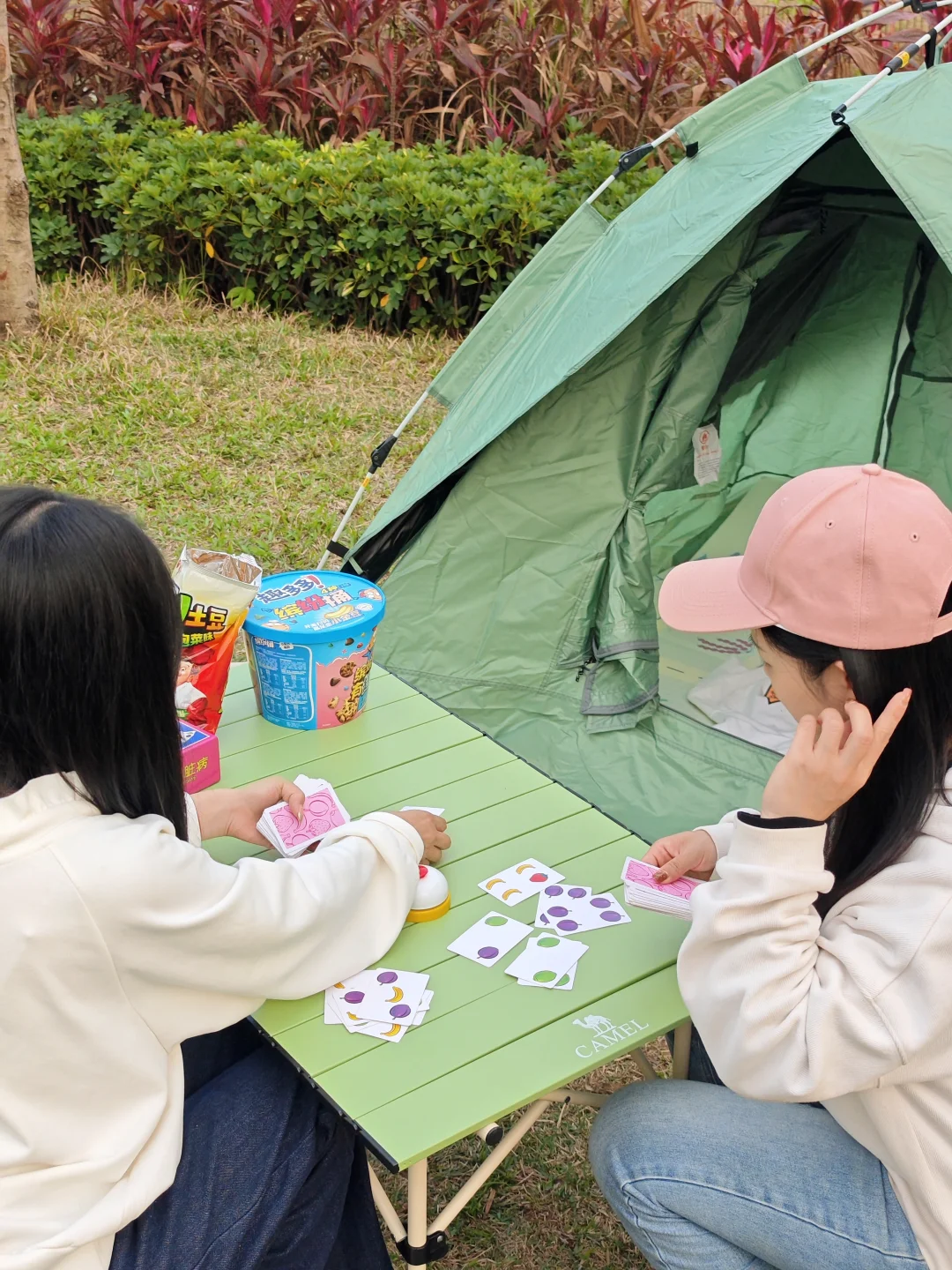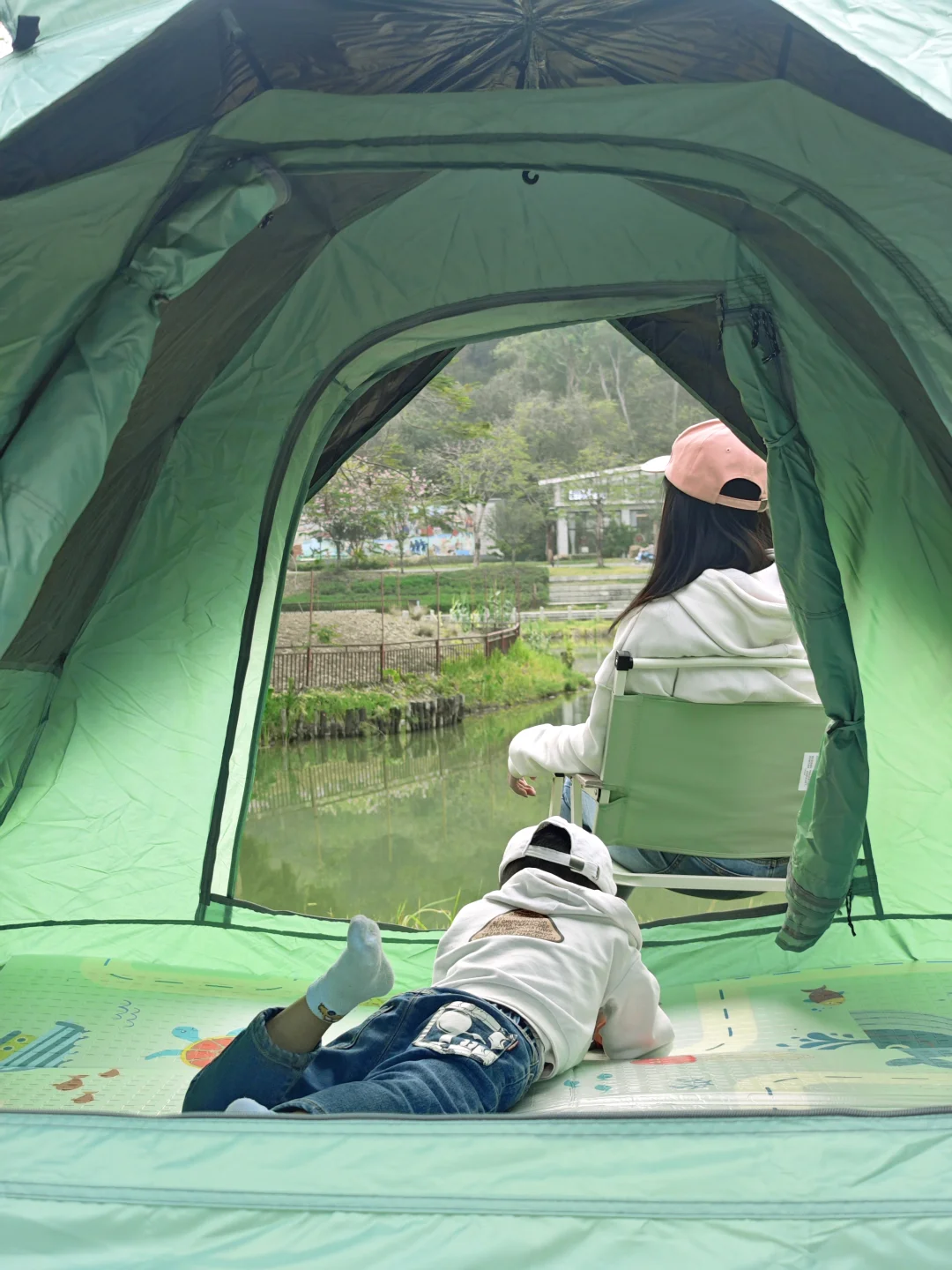 💡园区随处都能扎营(选树荫下、靠近厕所的位置),避开闷热还方便洗漱