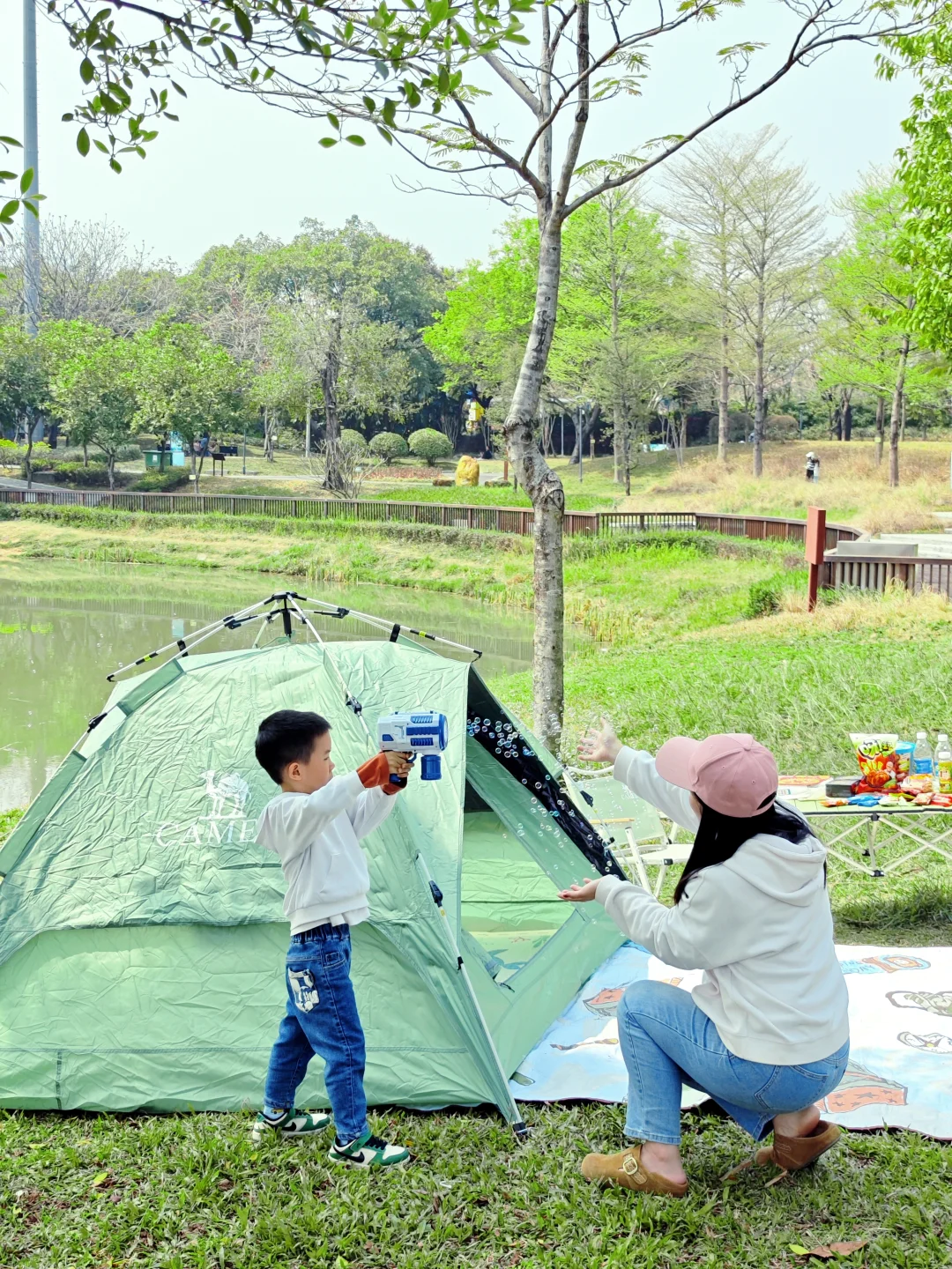 👏草坪宽敞平坦,不管是搭天幕、撑帐篷,还是简单铺块野餐垫,都超合适!