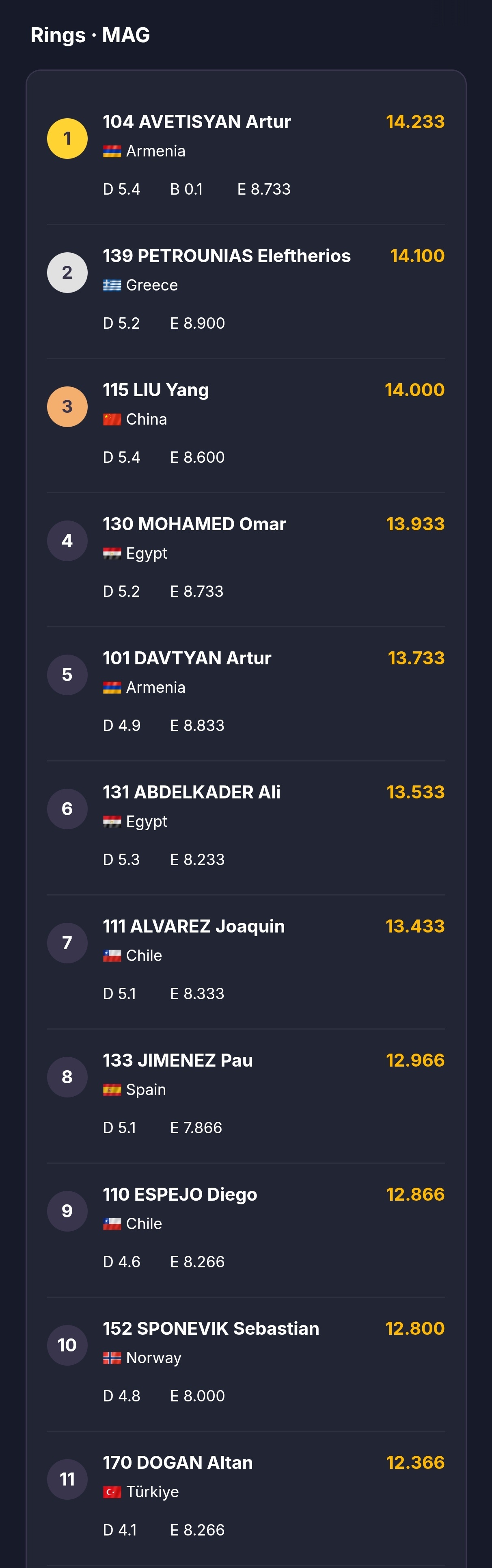 截到第11名,就是8个决赛+3个替补。不知道为啥想在这感慨一句男体现在是越来越年轻化,可能因为看到男自头两名是两个小孩吧