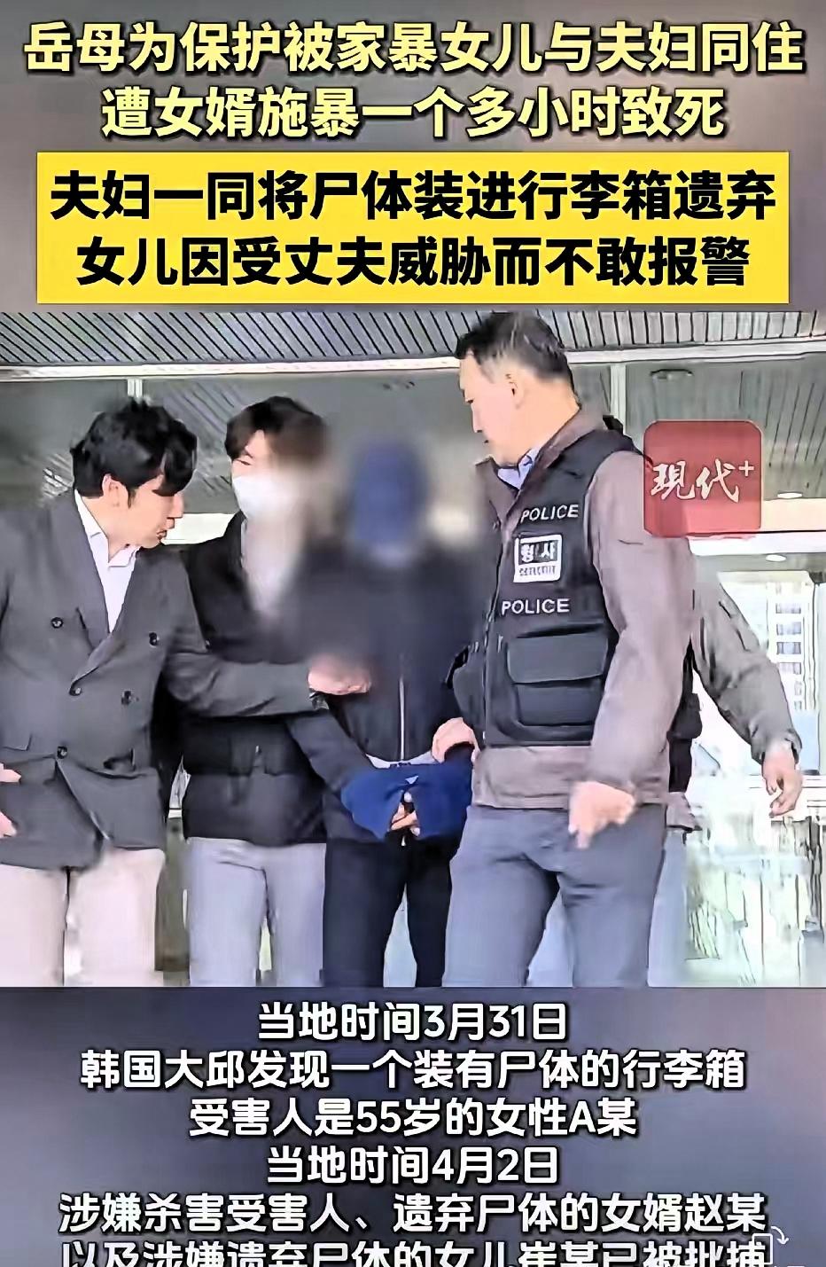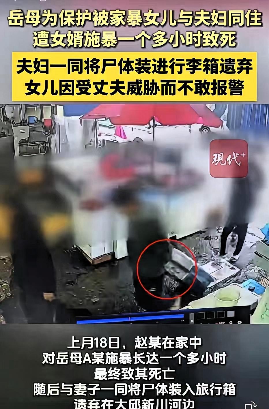 从今年2月开始,女婿的暴力行为不断升级,甚至将矛头对准岳母,多次对其实施殴打。在最后一次长达一小时的施暴后,这位母亲不幸离世。悲剧发生后,女婿威胁女儿不许报警,还要求她协助处理遗体。长期处于家暴环境中的女儿,因过度恐惧选择顺从,与丈夫一同将岳母的遗体装进行李箱丢弃至河中。