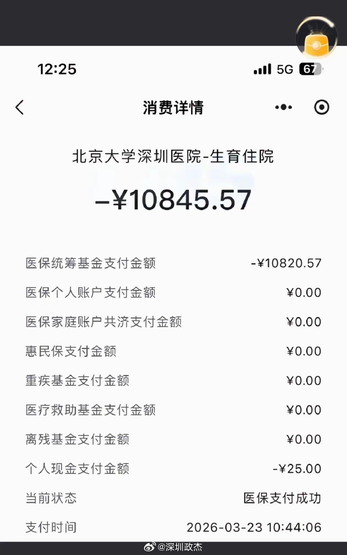 10845元的医疗费用,医保承担了绝大部分。 深圳