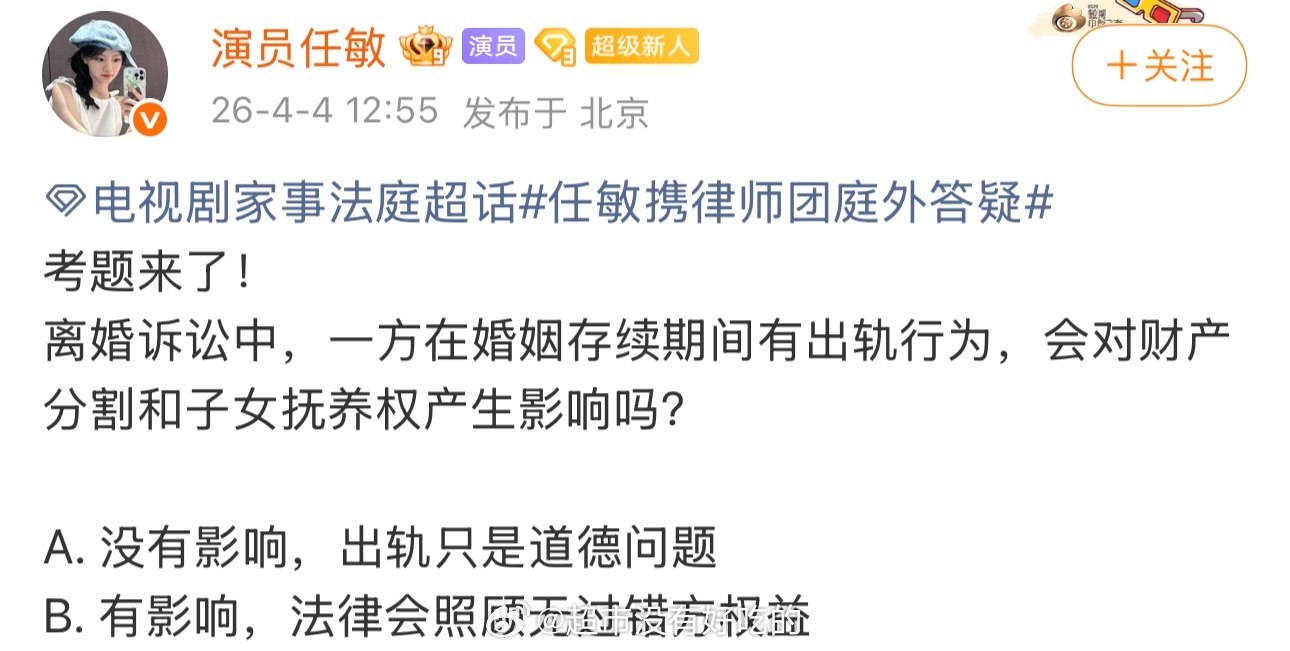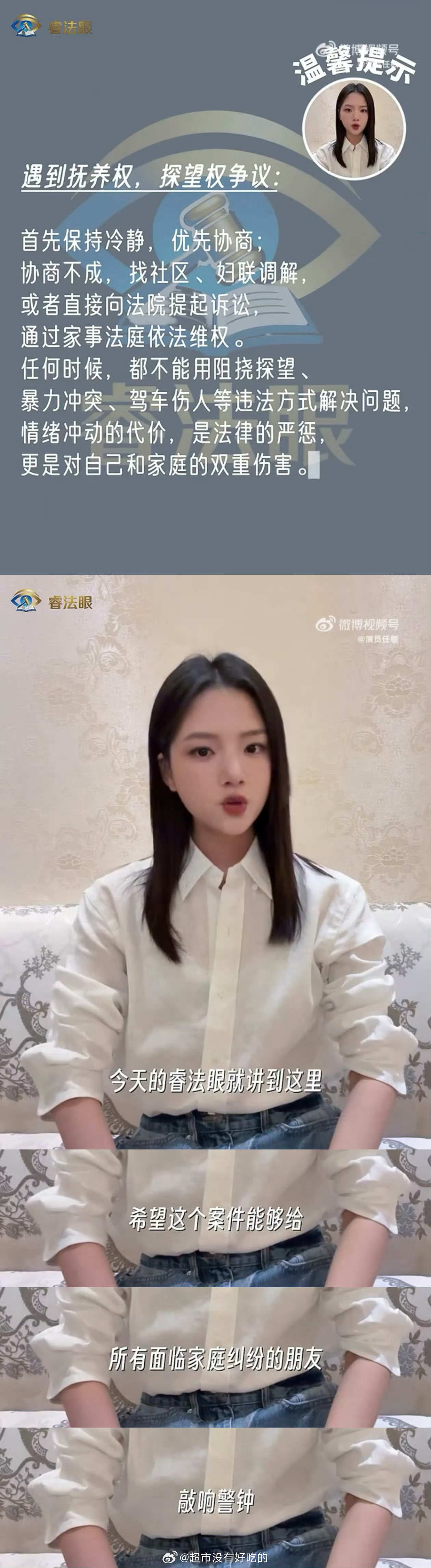 任敏携律师团庭外答疑任敏开了个睿法眼 别等上了法庭才后悔没早懂这些规则。任敏和律师团把探望权案件里的隐藏知识点挖出来,不煽情不营销,就是实打实普法。家事法庭