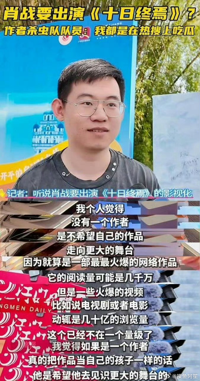 再厉害的网文,传播量也不是娱乐圈大类作品电影电视剧能比的……十日终焉的作者在这一点上很清醒,他也足够幸运遇到🍅就是牟足了劲想给自己的ip改编搞个一炮而红,所以拼命攒局求到肖战来演了。