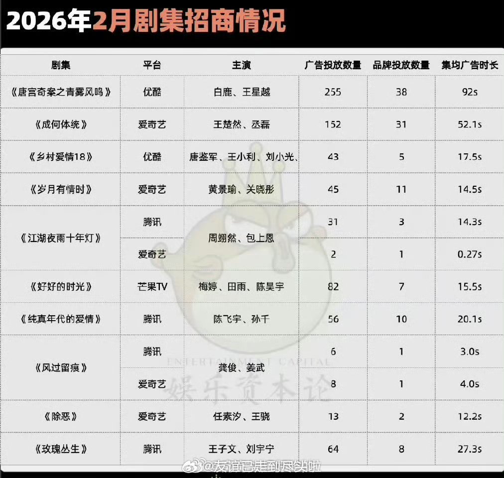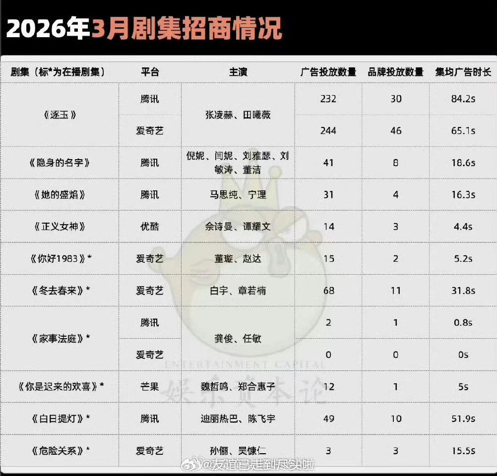 2026年1-3月剧集招商冠军分别是:《生命树》《唐宫奇案之青雾风鸣》《逐玉》
