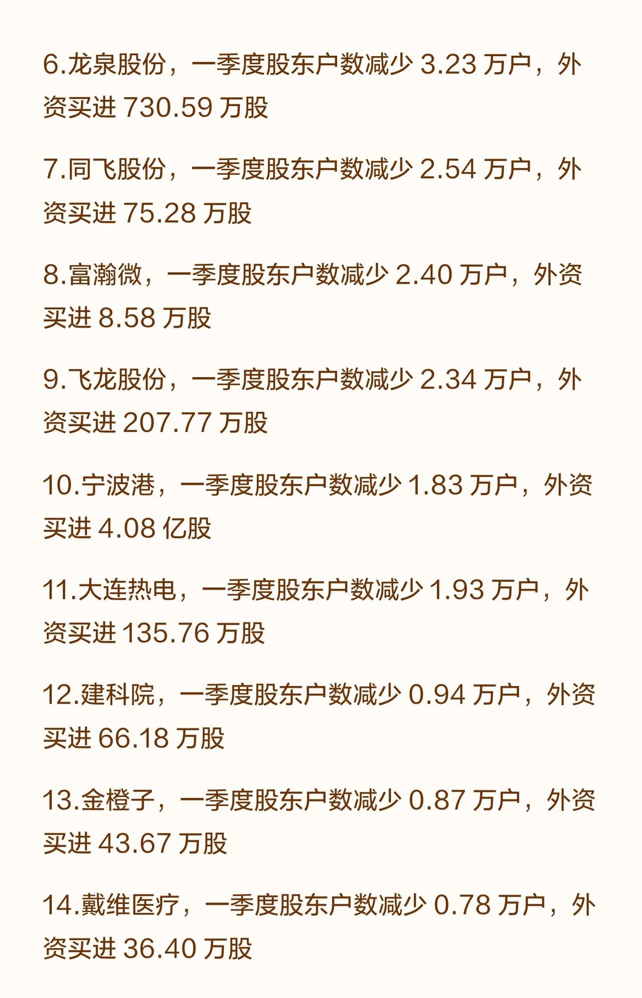 6. 龙泉股份:股东户数减少3.23万户,外资大举买入730.59万股,资金关注度提升。