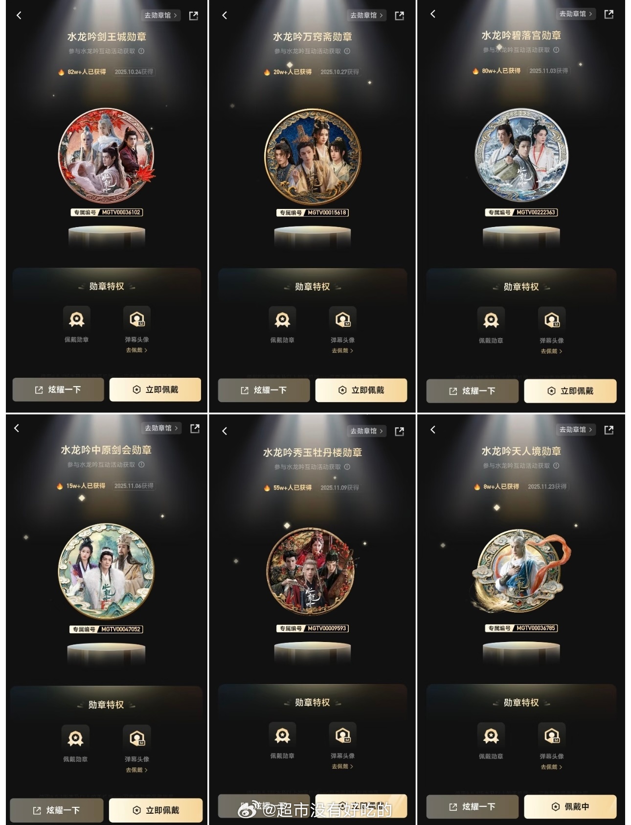 罗云熙《水龙吟》剑王城勋章再➕1w,达到82w目前为止水龙吟勋章总数达到260w
