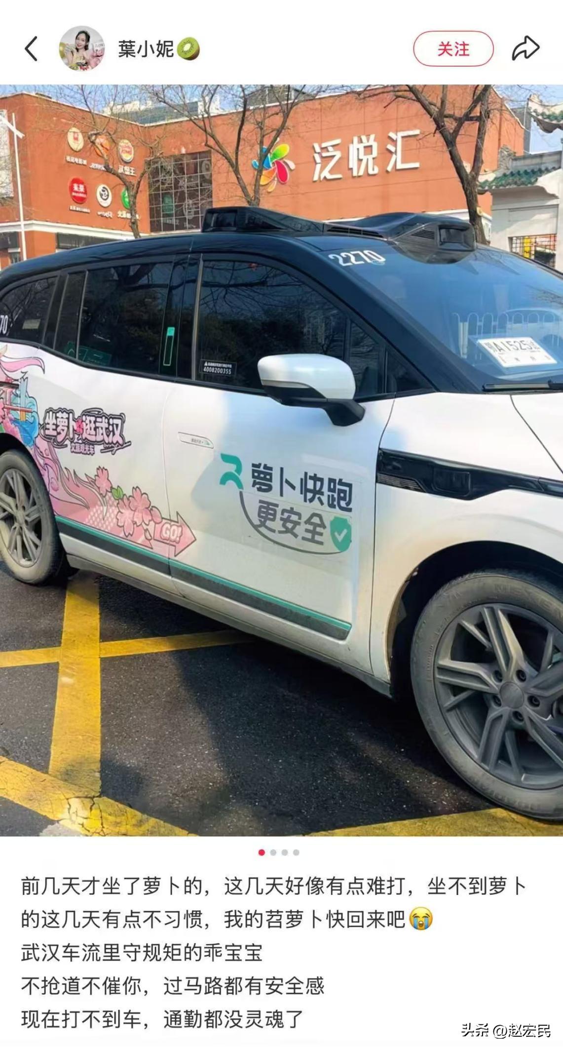 从一些萝卜的老顾客来看,没有萝卜的武汉,出行似乎也少了点光。之前萝卜有条不紊的运行时,很多人嫌它速度慢、反应钝,过个马路等得心急。但真打不到了,萝卜快跑规规矩矩等红灯,老老实实让行人,车里不尬聊不放歌的这份松弛感,又让人有点怀念。